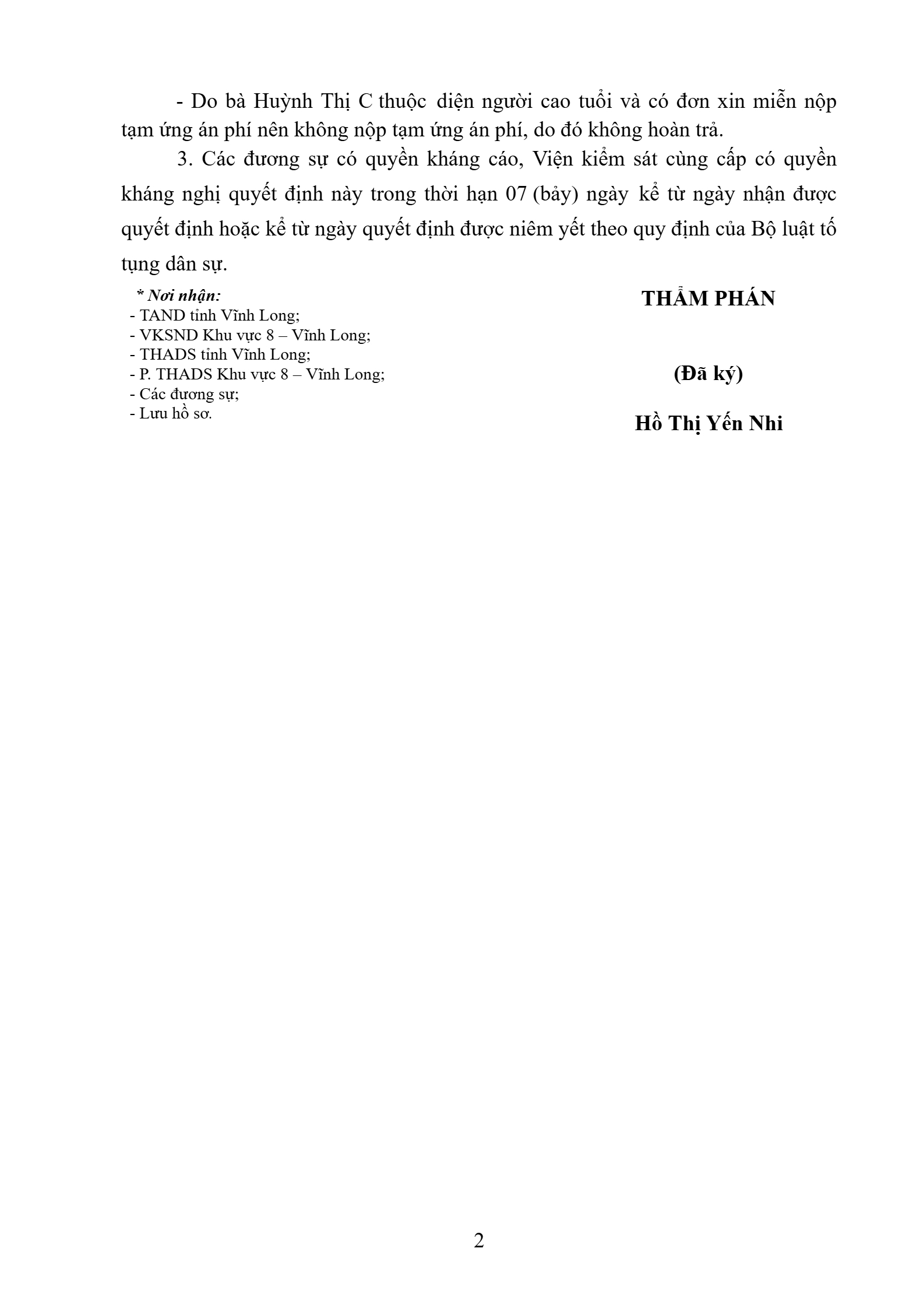| Tòa án xét xử: | Tòa án nhân dân khu vực 8 - Vĩnh Long, tỉnh Vĩnh Long |