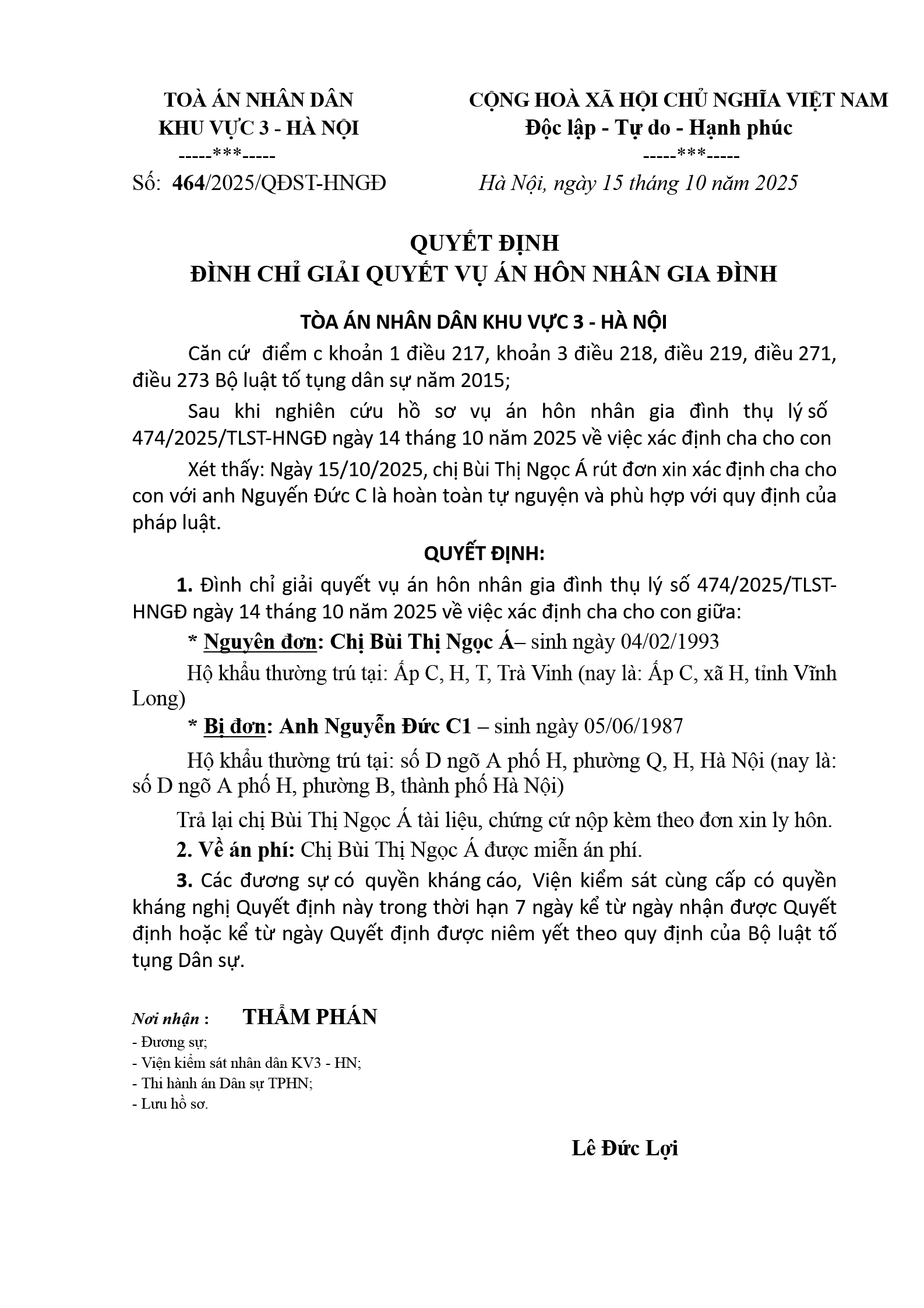 | Số hiệu: | 464/2025/QĐST-HNGĐ |