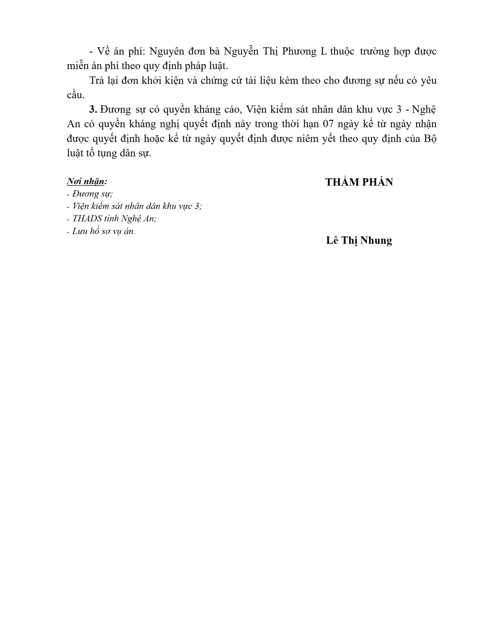 | Tòa án xét xử: | Tòa án nhân dân khu vực 3 - Nghệ An, tỉnh Nghệ An |