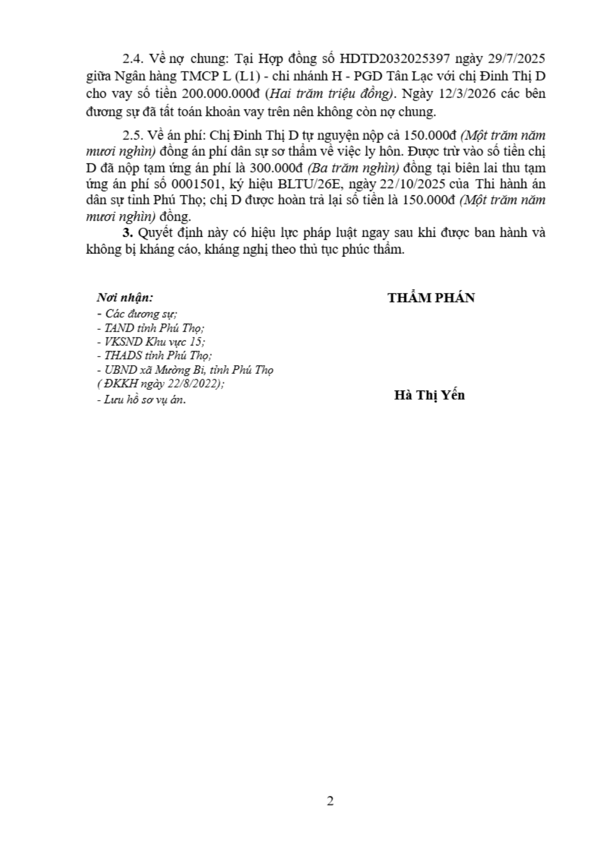 | Tòa án xét xử: | Tòa án nhân dân khu vực 15 - Phú Thọ, tỉnh Phú Thọ |
