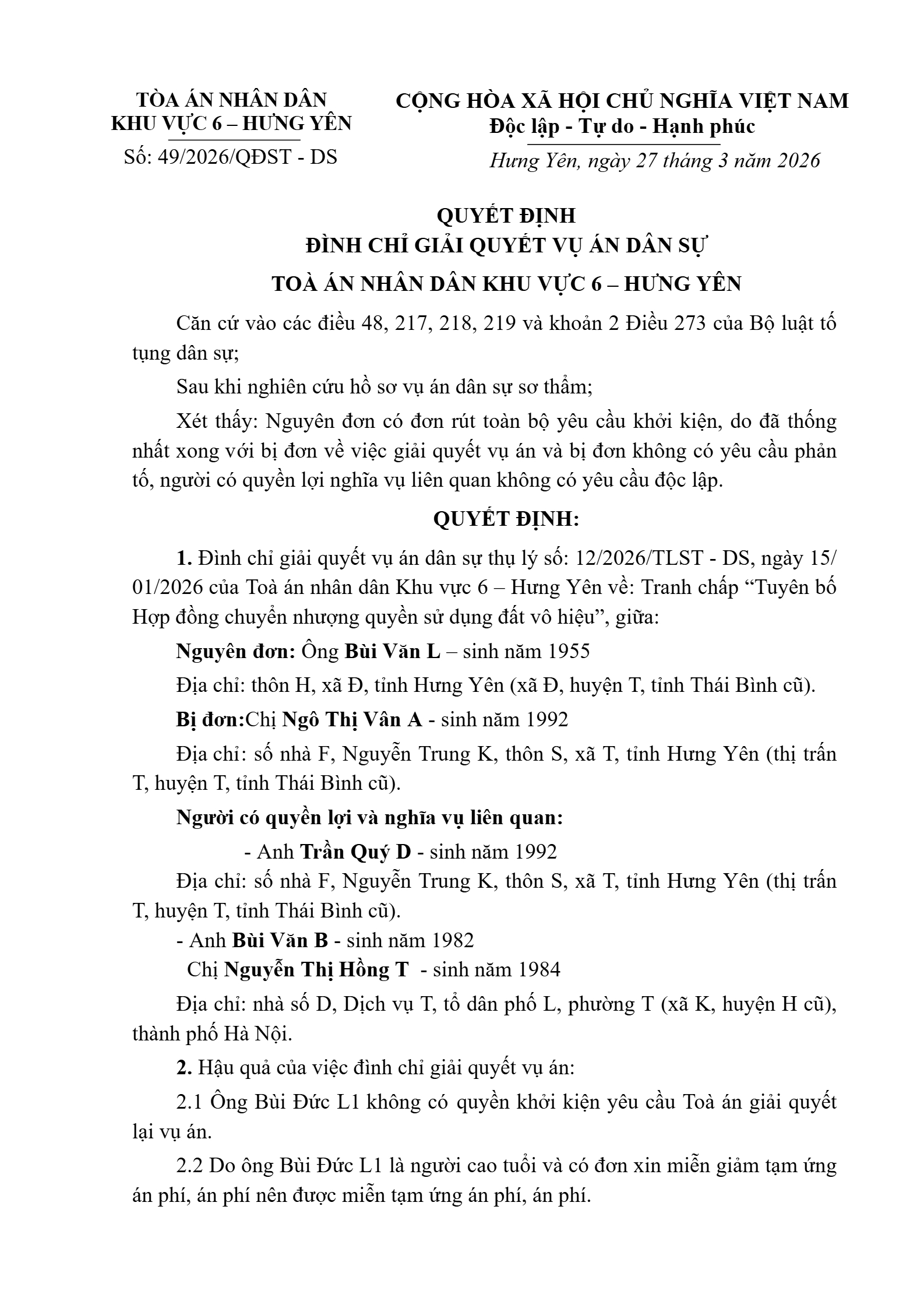 | Số hiệu: | 49/2026/QĐST-DS |