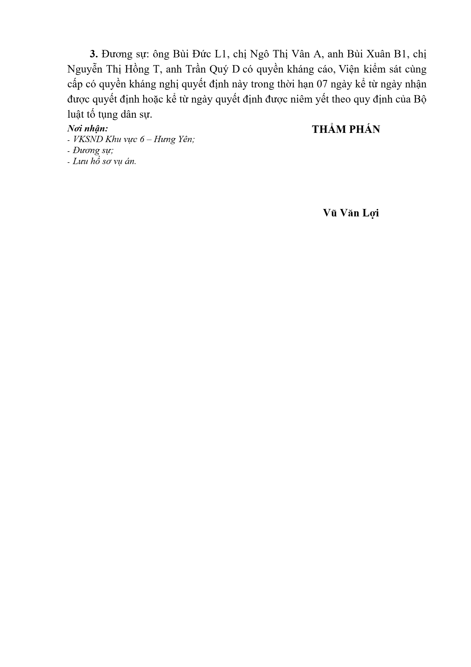| Thông tin về vụ/việc: | Bùi Văn L - Ngô Thị Vân A |