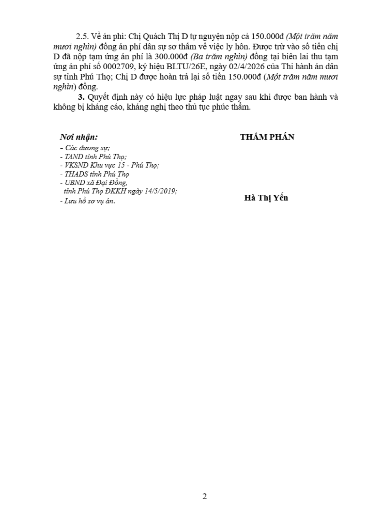 | Tòa án xét xử: | Tòa án nhân dân khu vực 15 - Phú Thọ, tỉnh Phú Thọ |