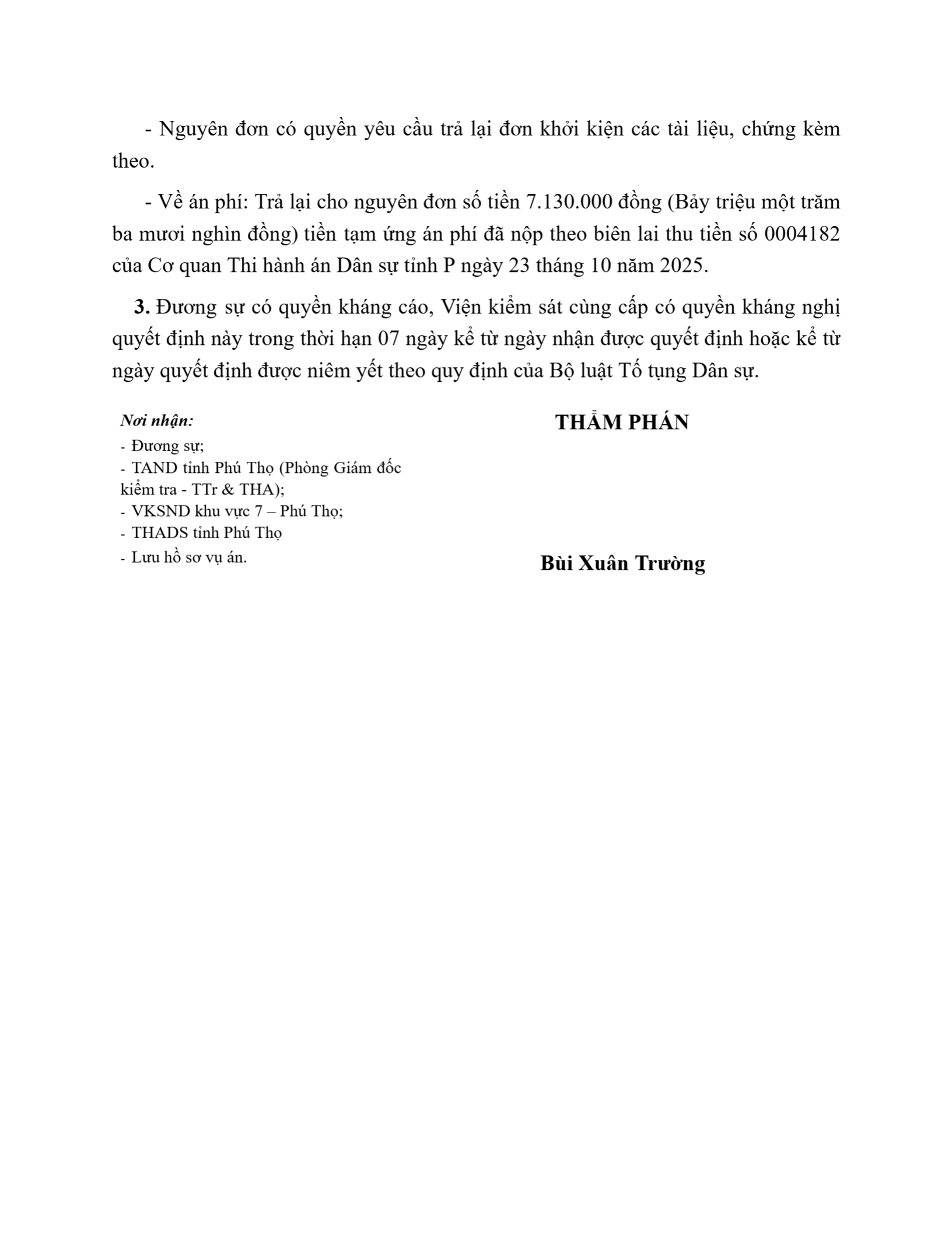 | Tòa án xét xử: | Tòa án nhân dân khu vực 7 - Phú Thọ, tỉnh Phú Thọ |