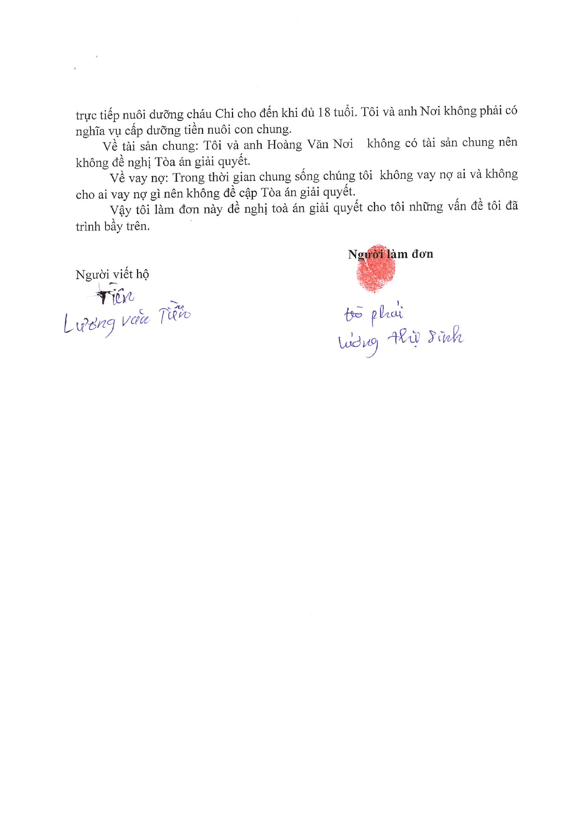 | Thông tin về vụ/việc: | Quyết định công nhận thuận tình ly hôn giữa chị Lương Thị Sinh Hoàng Văn nơi |