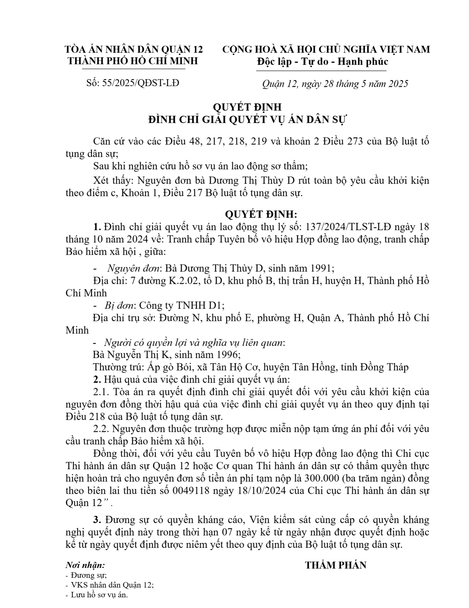 | Số hiệu: | 55/2025/QĐST-LĐ |