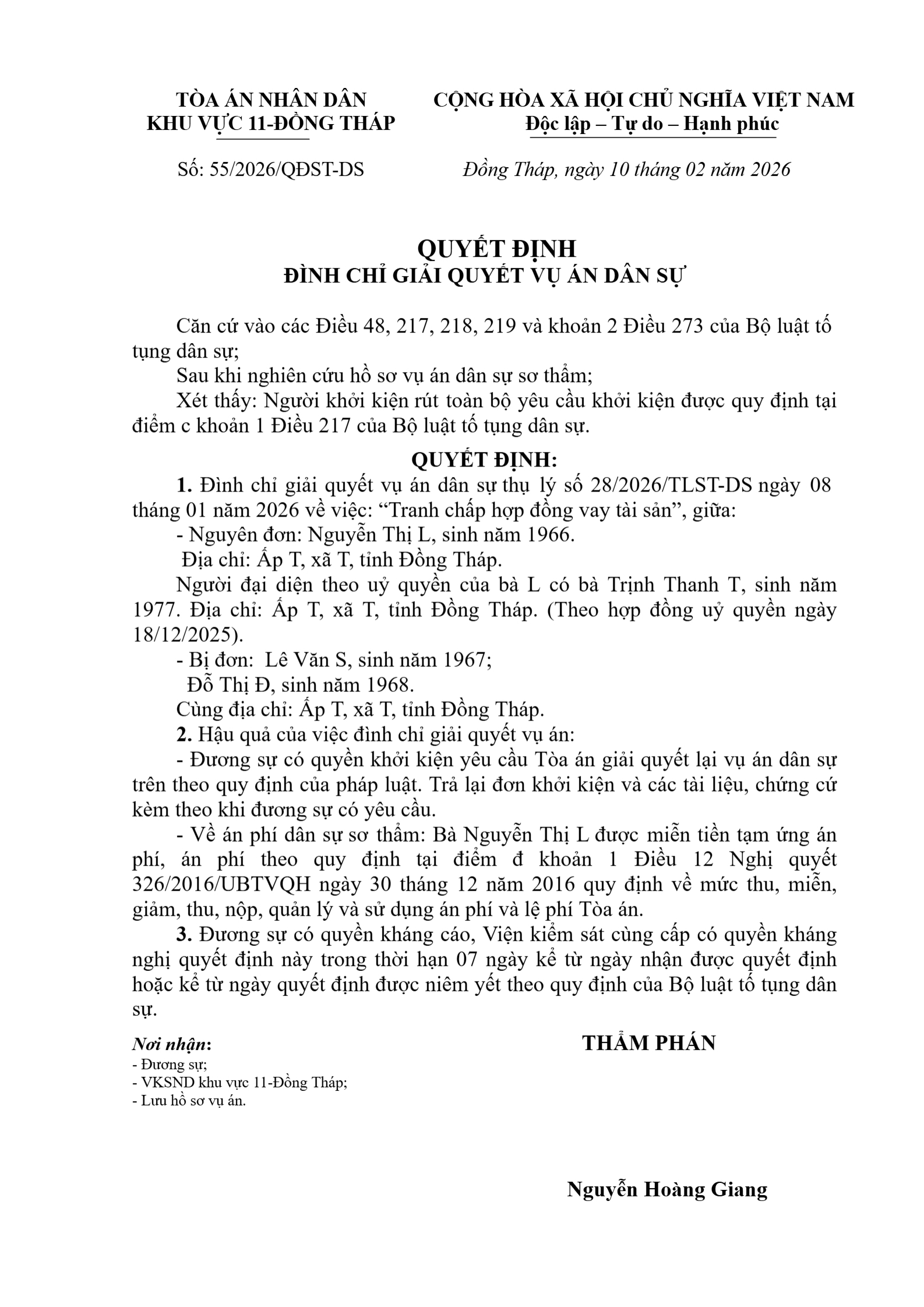 | Số hiệu: | 55/2026/QĐST-DS |
