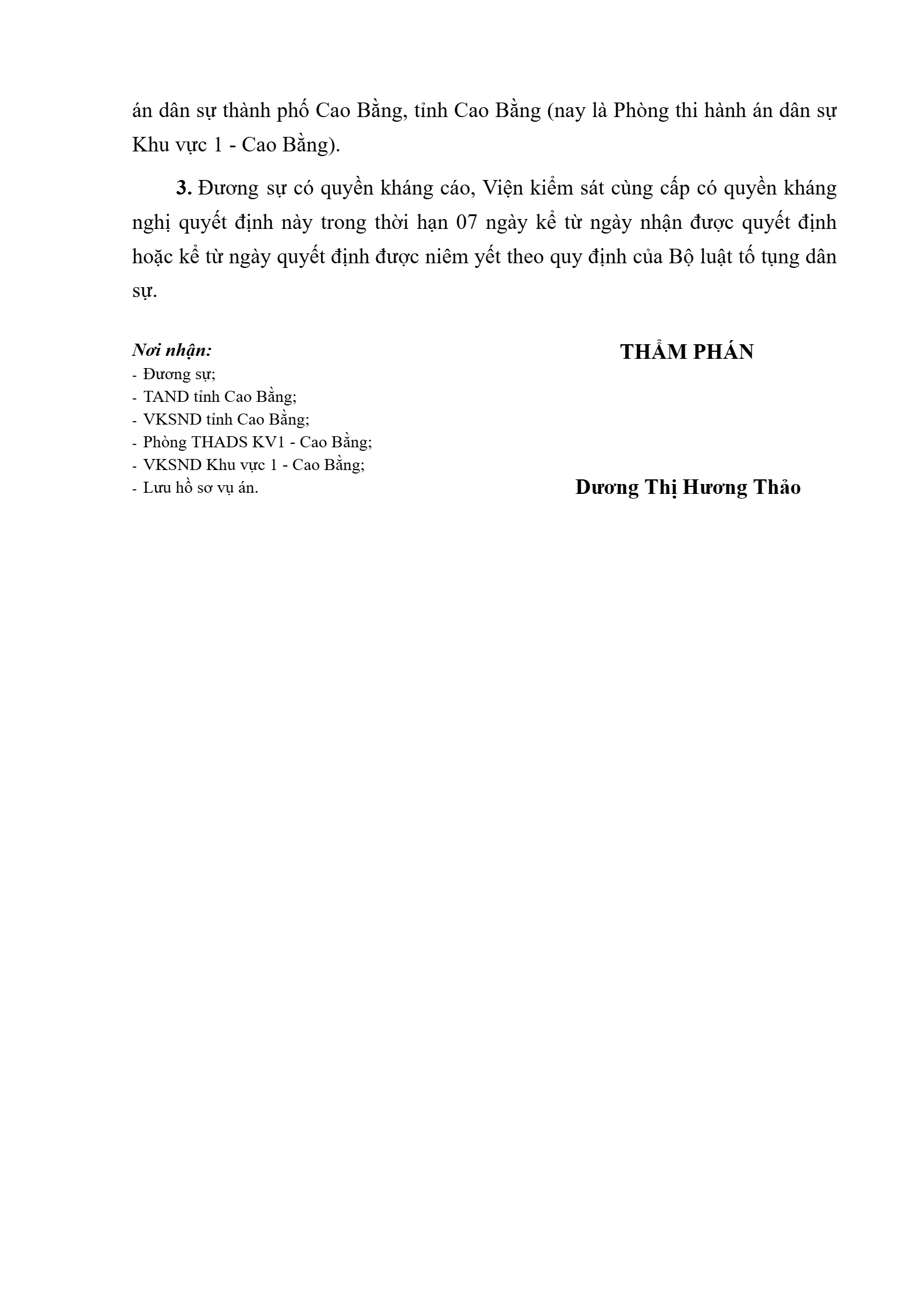 | Tòa án xét xử: | Tòa án nhân dân khu vực 1 - Cao Bằng, tỉnh Cao Bằng |
