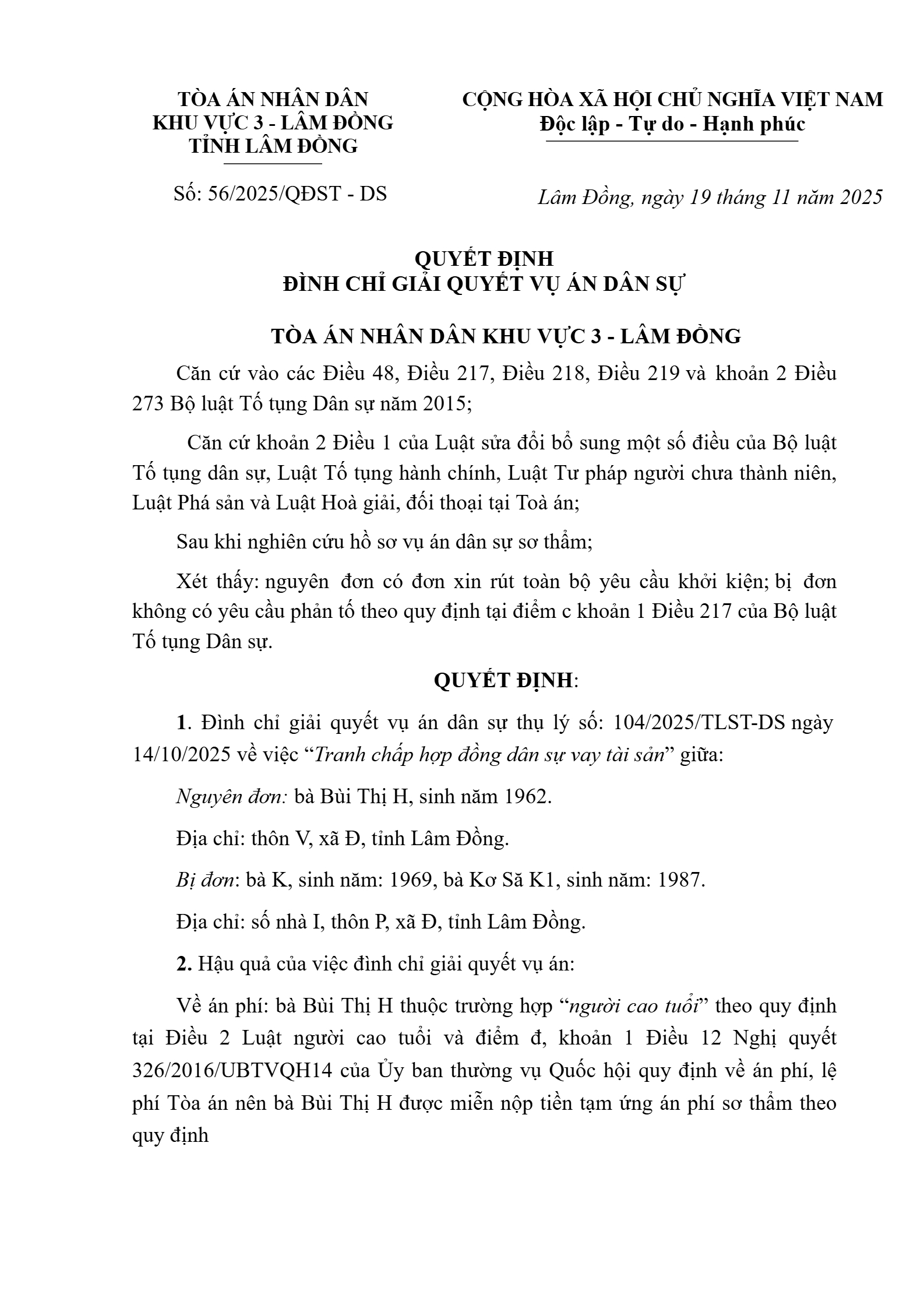 | Số hiệu: | 56/2025/QĐST-DS |