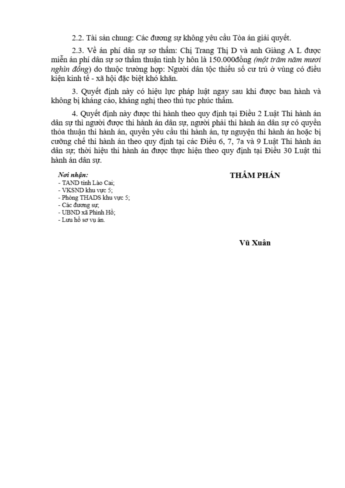 | Thông tin về vụ/việc: | Trang Thị D xin ly hôn Giàng A L |