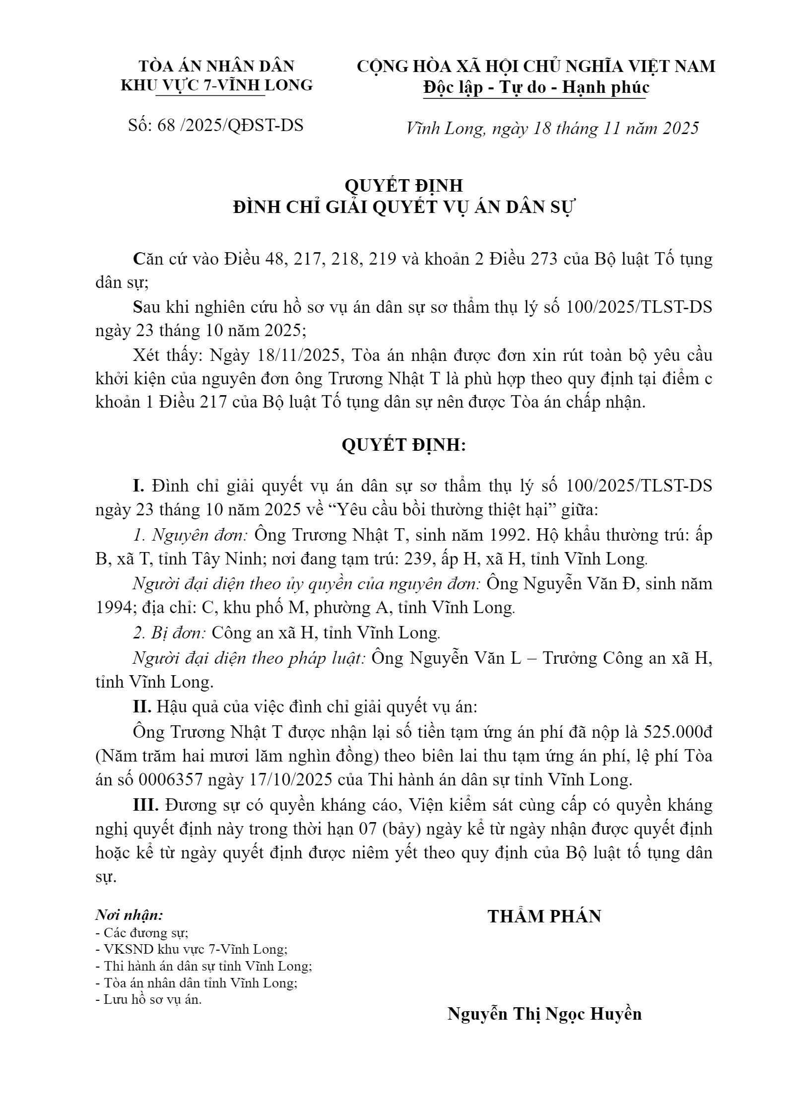 | Tòa án xét xử: | Tòa án nhân dân khu vực 7 - Vĩnh Long, tỉnh Vĩnh Long |