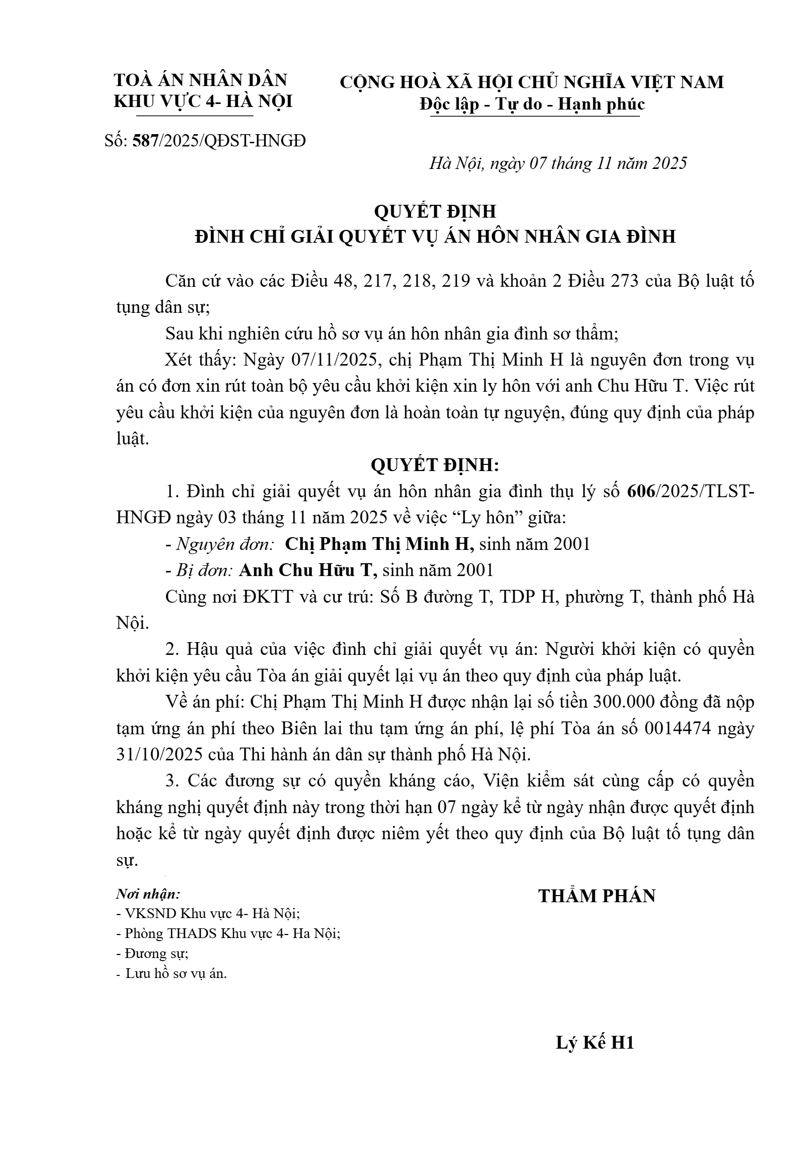 | Số hiệu: | 587/2026/QĐST-HNGĐ |