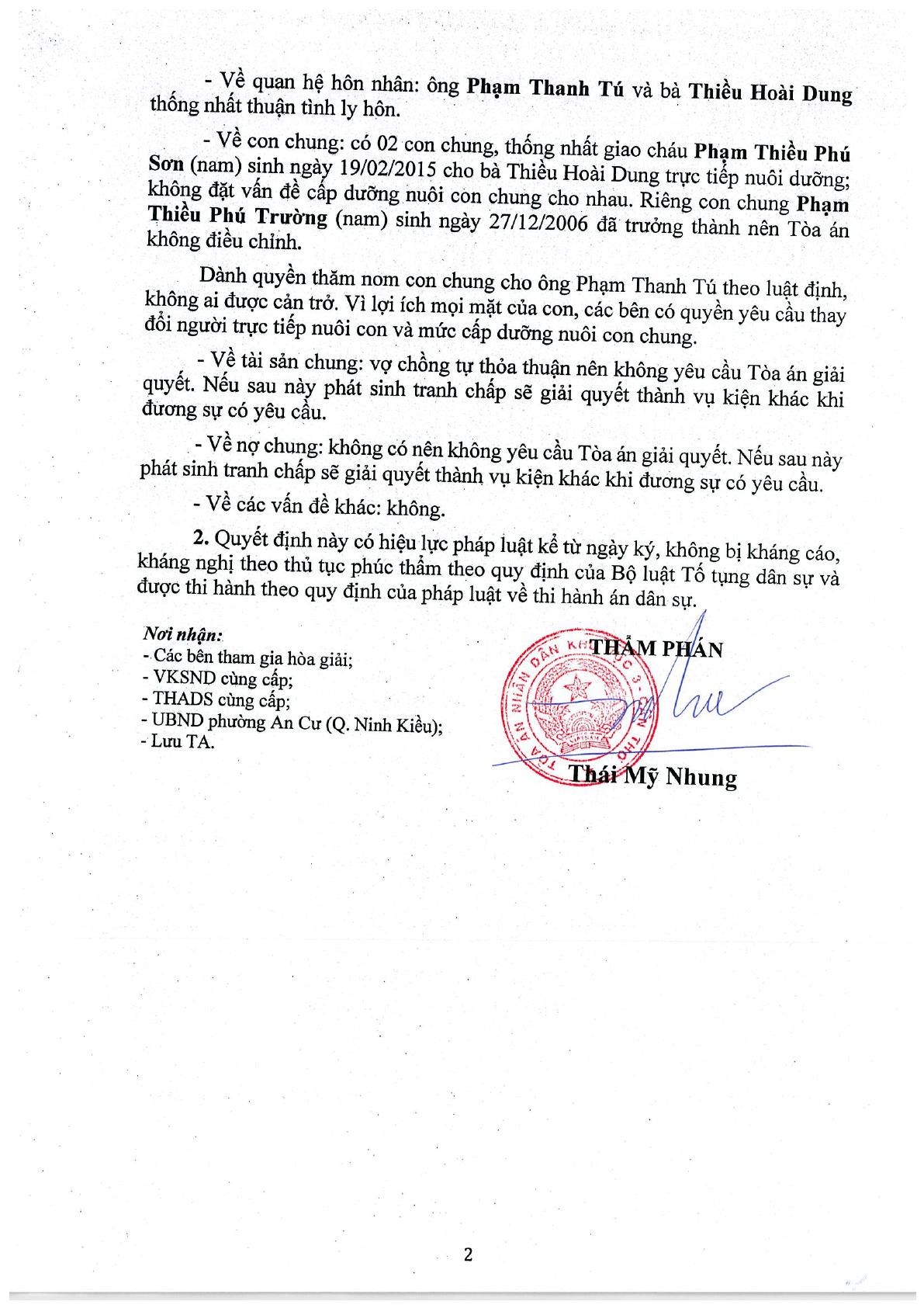 | Thông tin về vụ/việc: | Cả hai thuận tình tại TTHG yêu cầu TA công nhận |