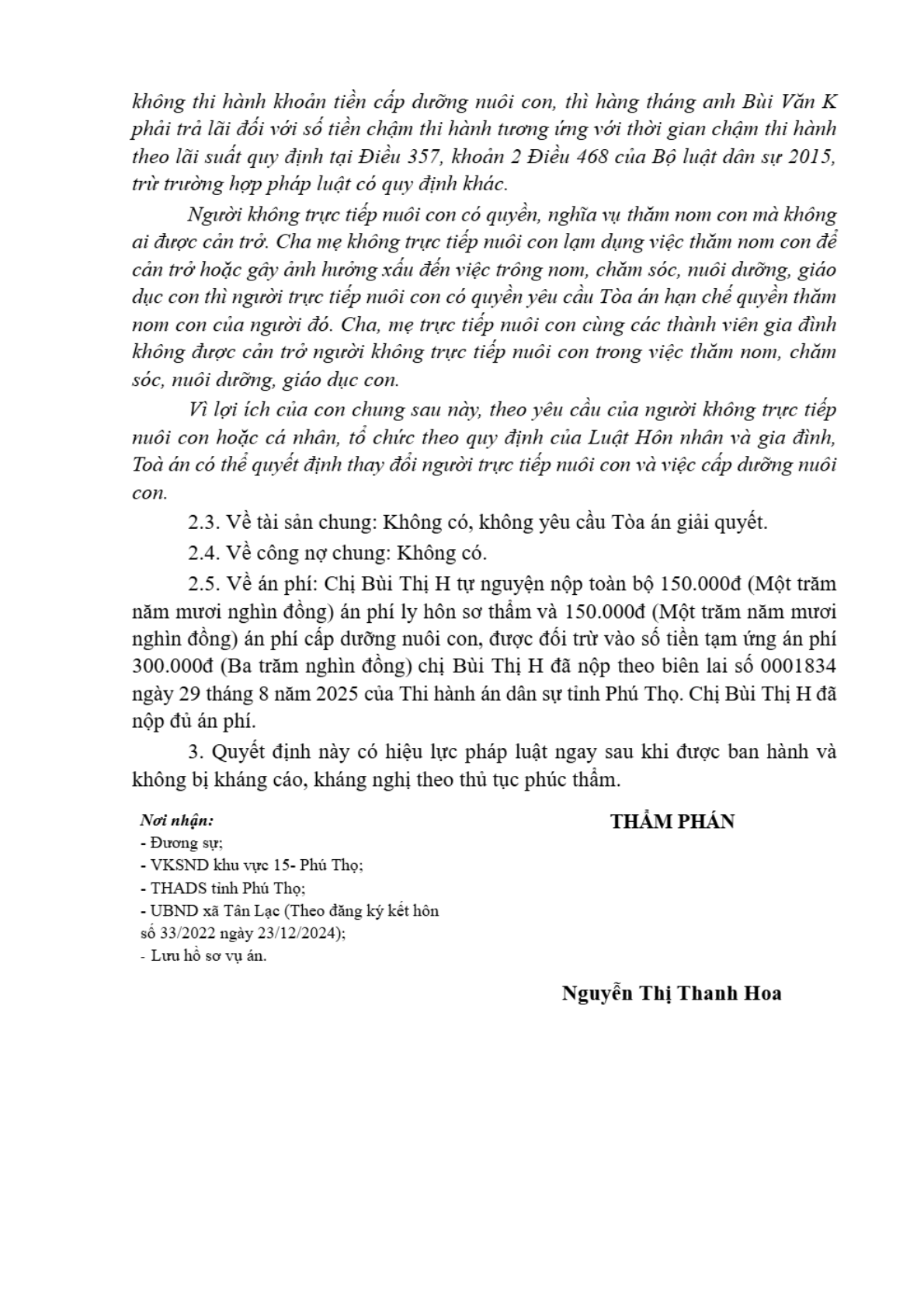 | Tòa án xét xử: | Tòa án nhân dân khu vực 15 - Phú Thọ, tỉnh Phú Thọ |