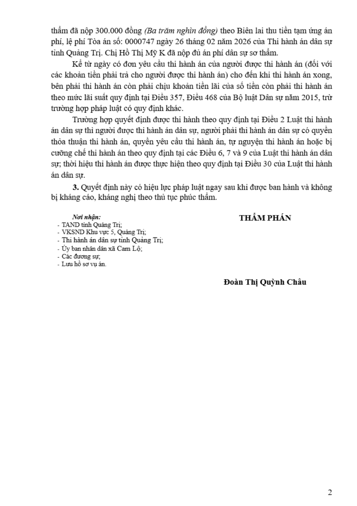 | Tòa án xét xử: | Tòa án nhân dân khu vực 5 - Quảng Trị, tỉnh Quảng Trị |