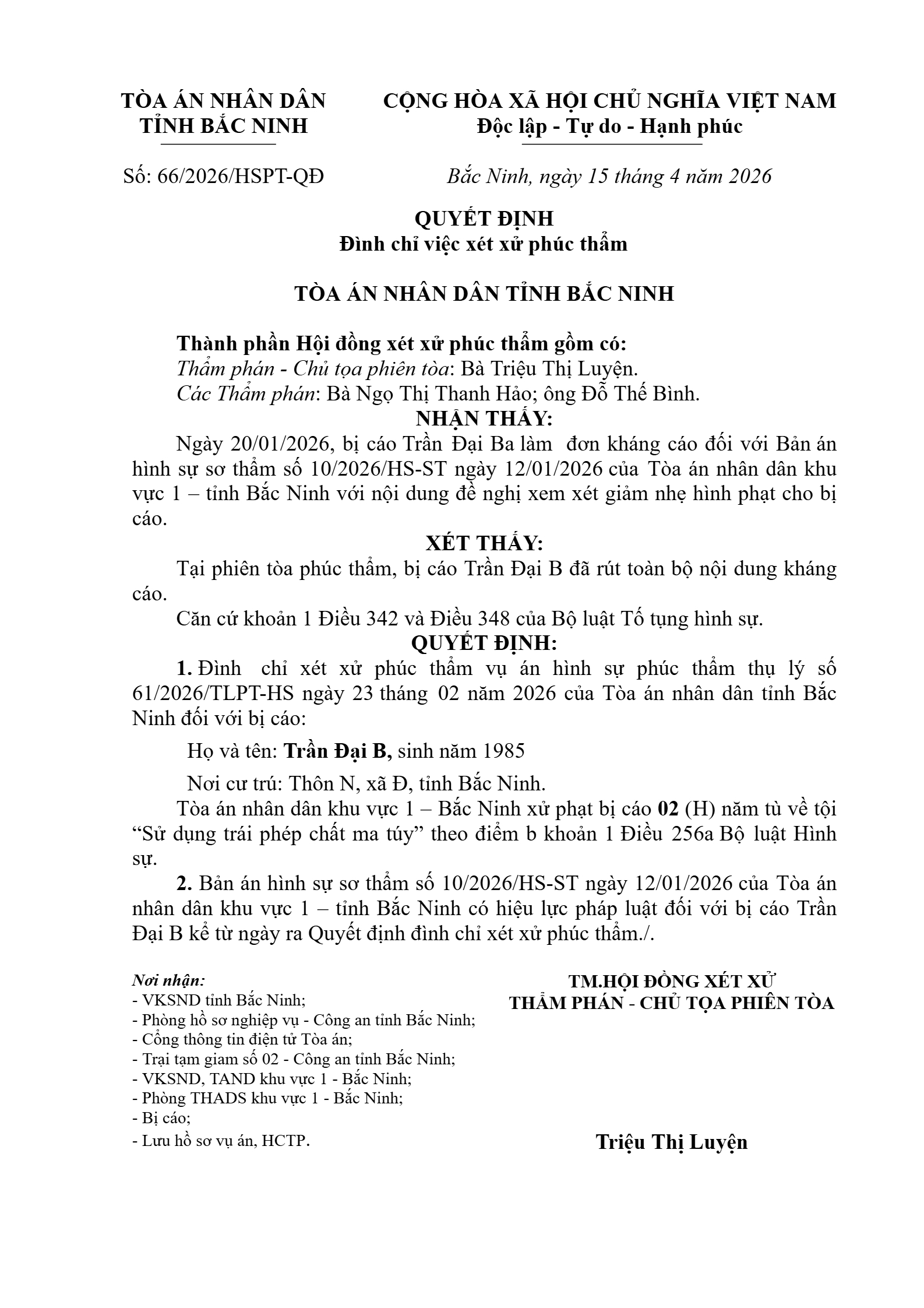 Quyết định số 66/2026/QĐPT-HS ngày 15/04/2026 của TAND tỉnh Bắc Ninh