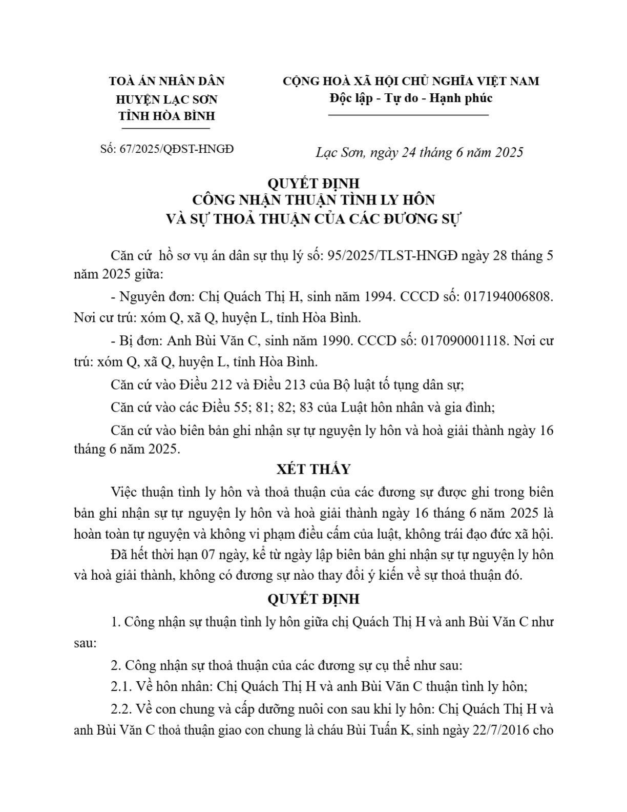 | Số hiệu: | 67/2025/QĐST-HNGĐ |