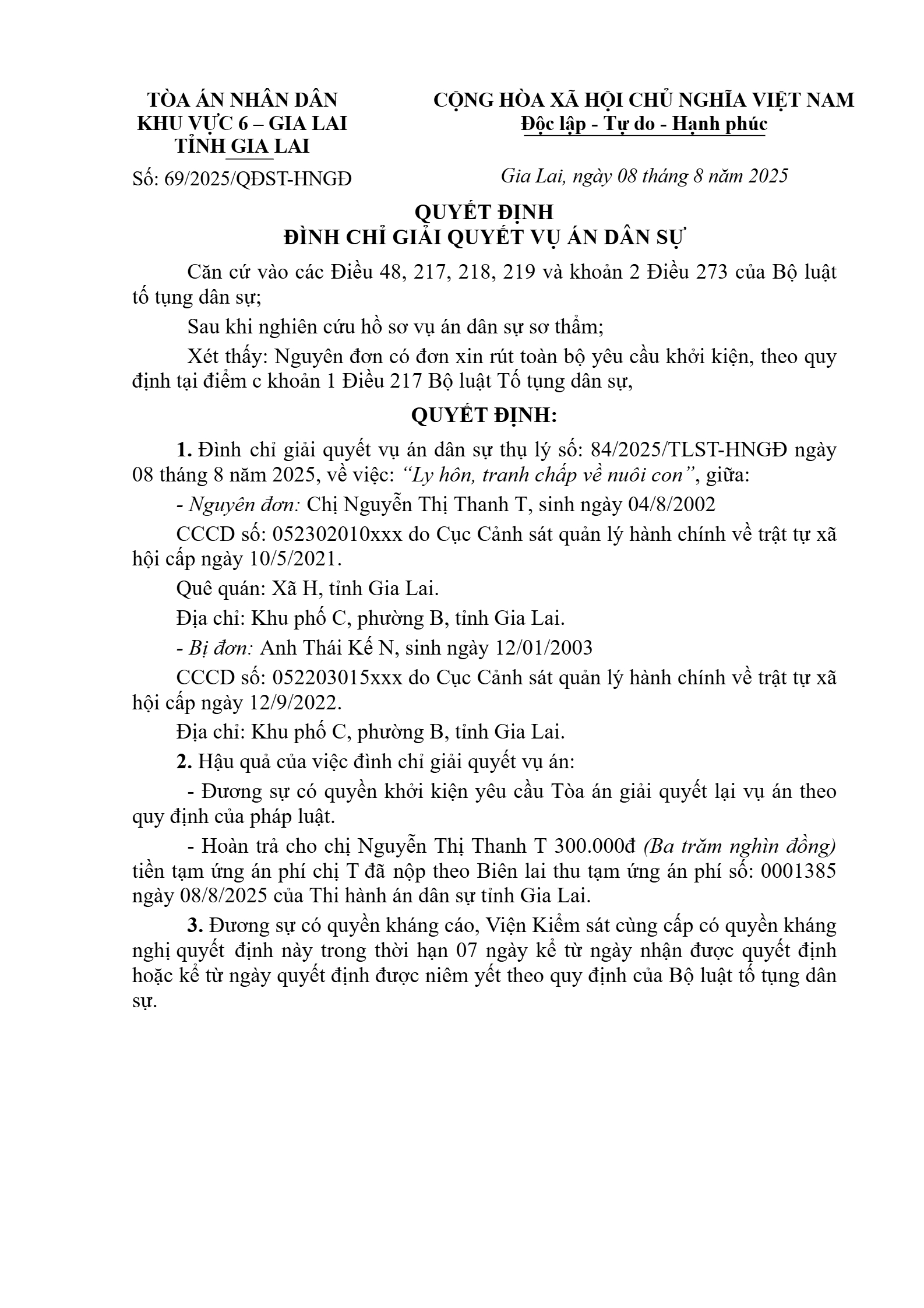 | Số hiệu: | 69/2025/QĐST-HNGĐ |