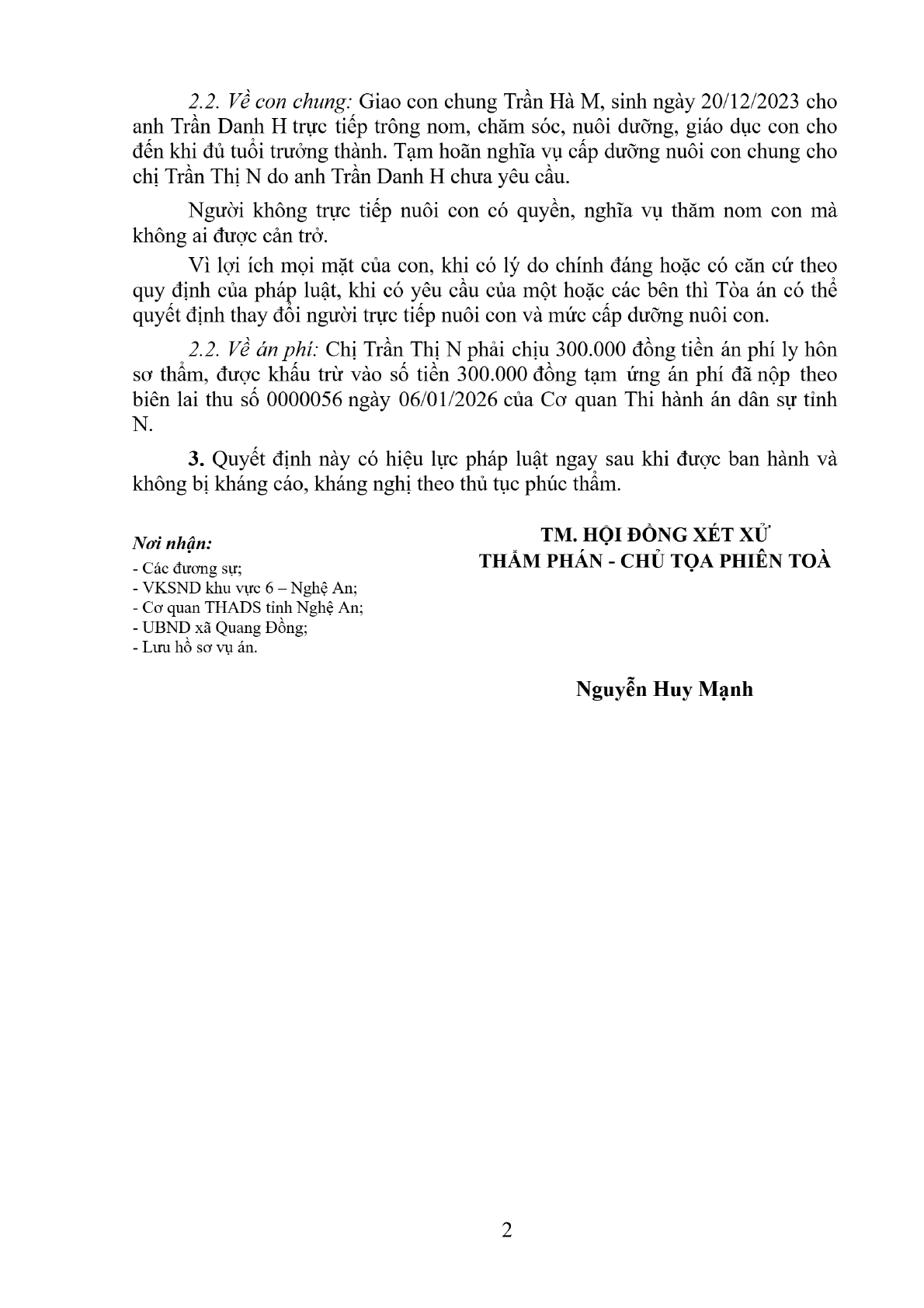 | Thông tin về vụ/việc: | Trần Thị N - Trần Danh H |