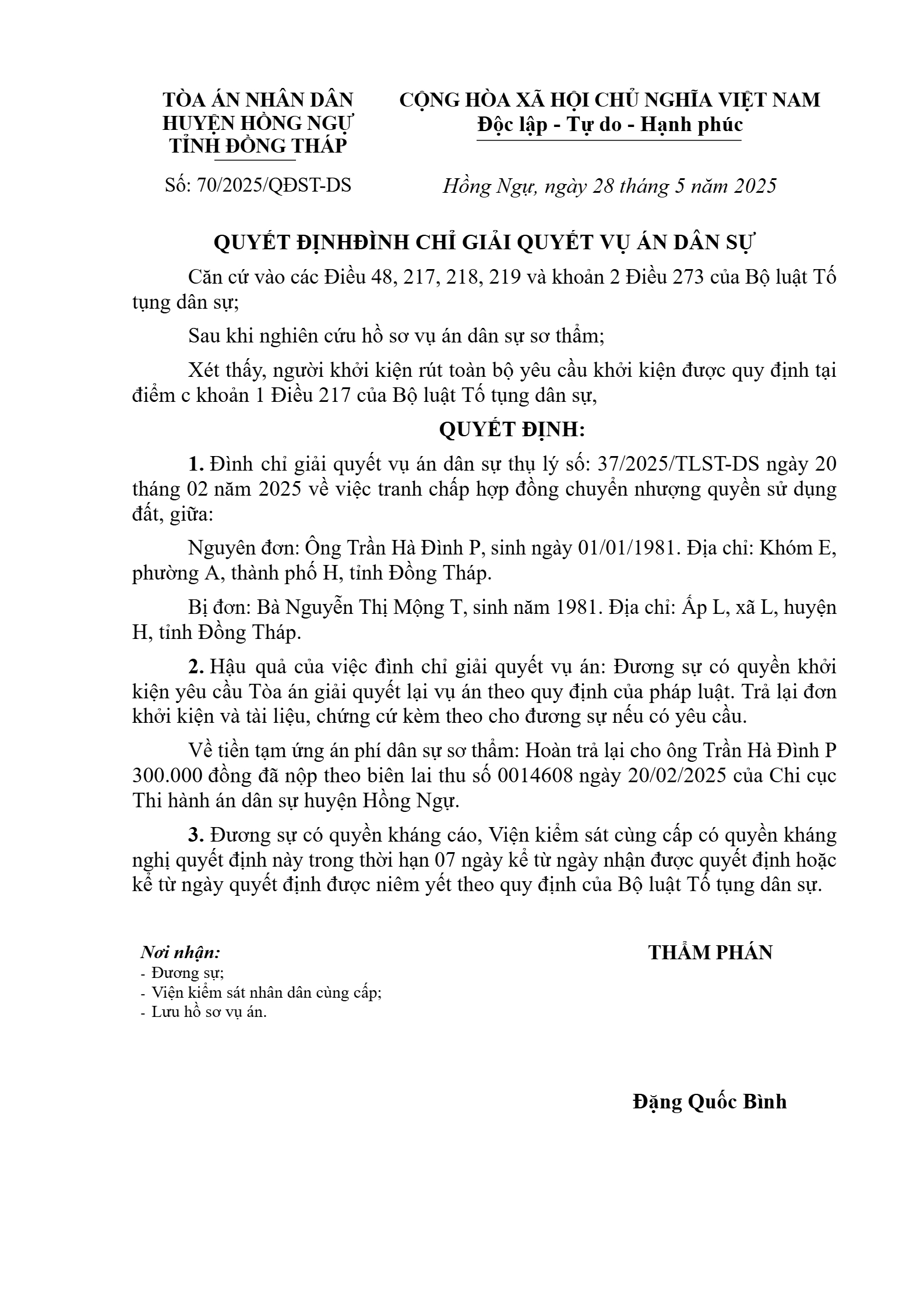 | Số hiệu: | 70/2025/QĐST-DS |
