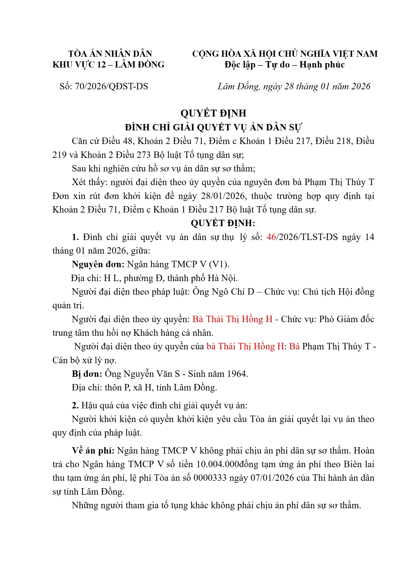 | Số hiệu: | 70/2026/QĐST-DS |