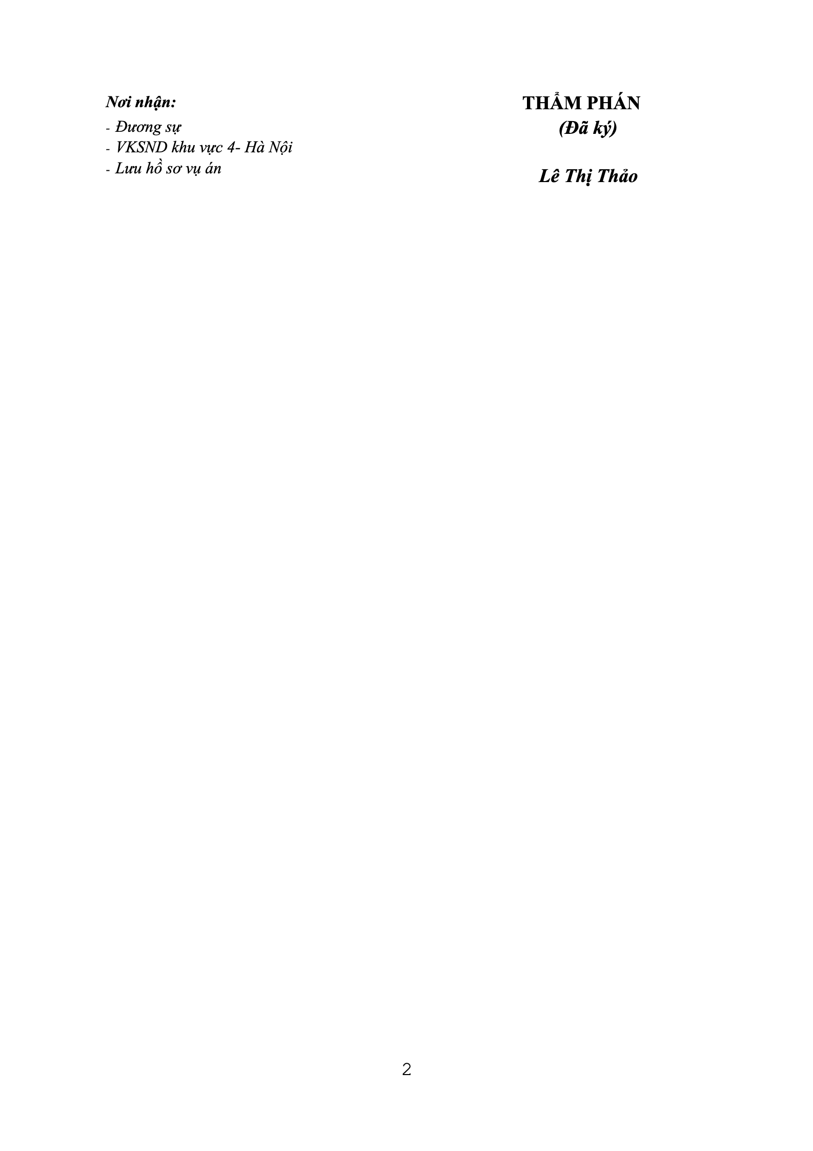 | Tòa án xét xử: | Tòa án nhân dân khu vực 4 - Hà Nội, TP. Hà Nội |