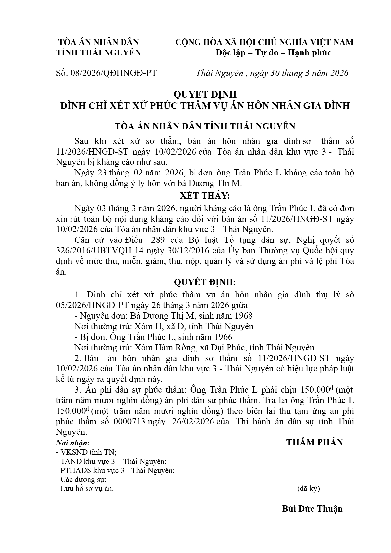 | Tên Quyết định: | Quyết định số 8/2026/QĐPT-HNGĐ ngày 01/04/2026 của TAND tỉnh Thái Nguyên về vụ án ly hôn về mâu thuẫn gia đình |