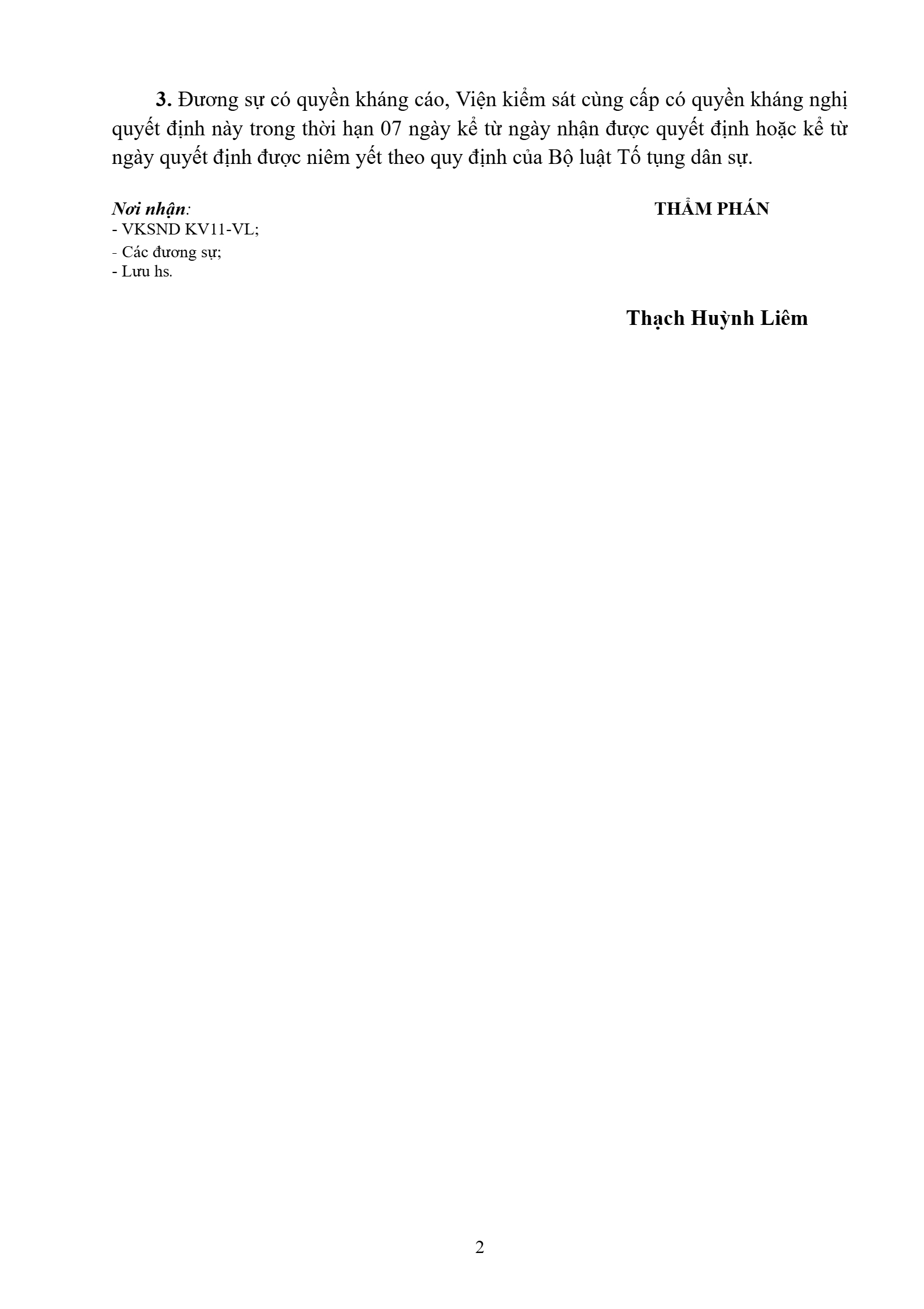 | Tòa án xét xử: | Tòa án nhân dân khu vực 11 - Vĩnh Long, tỉnh Vĩnh Long |