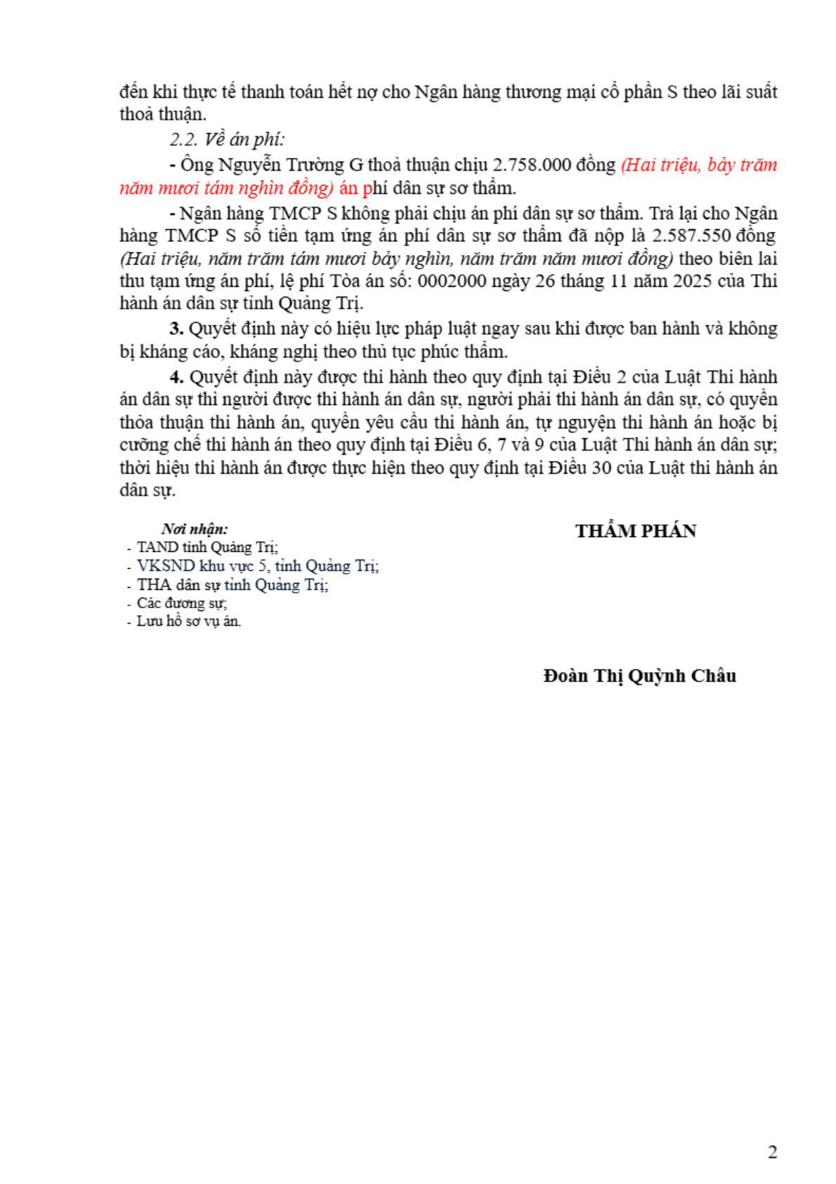 | Tòa án xét xử: | Tòa án nhân dân khu vực 5 - Quảng Trị, tỉnh Quảng Trị |