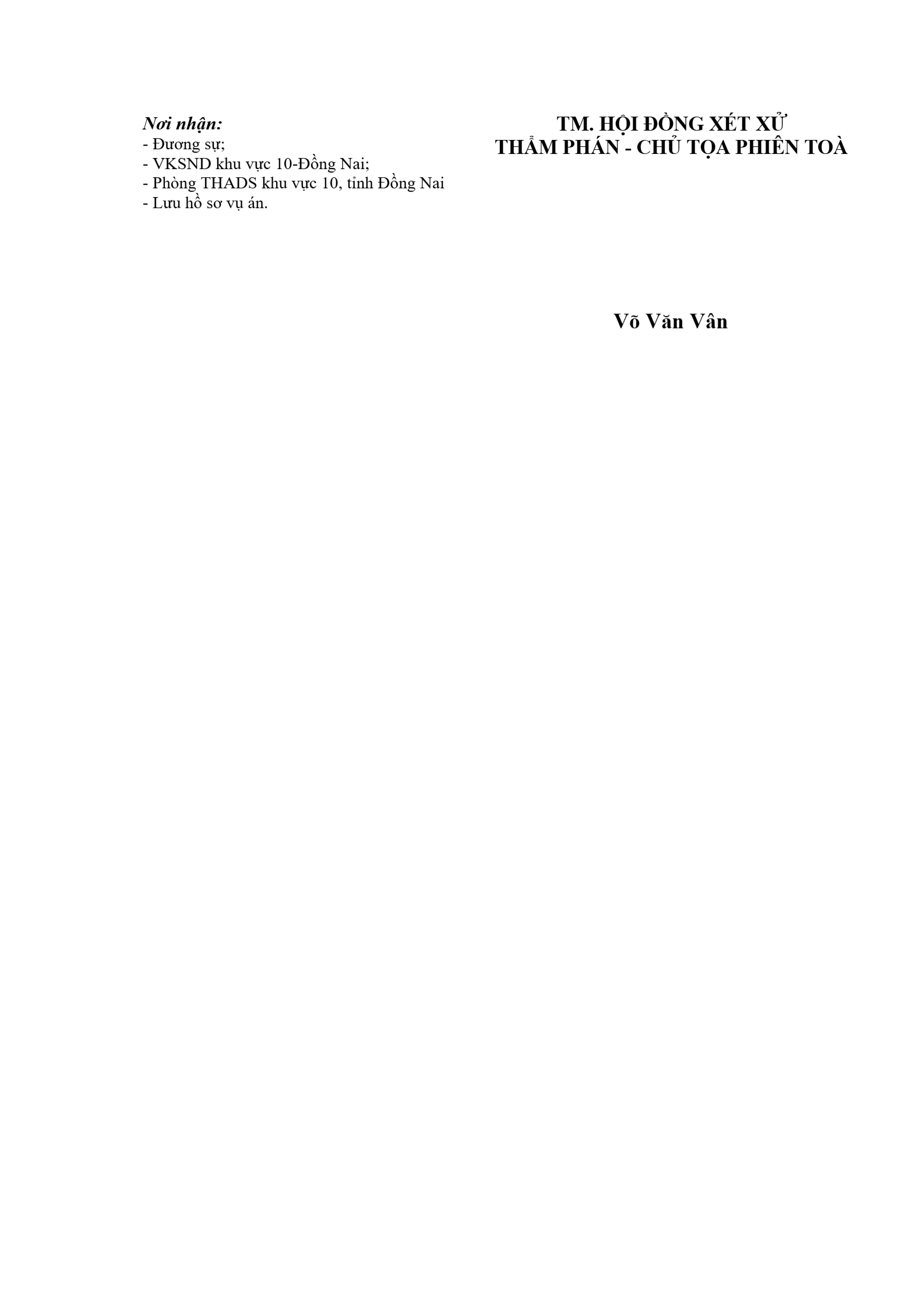 | Tòa án xét xử: | Tòa án nhân dân khu vực 10 - Đồng Nai, tỉnh Đồng Nai |