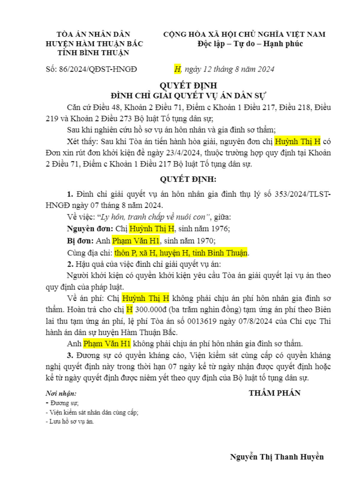 | Tòa án xét xử: | TAND huyện Hàm Thuận Bắc (TAND tỉnh Bình Thuận) |