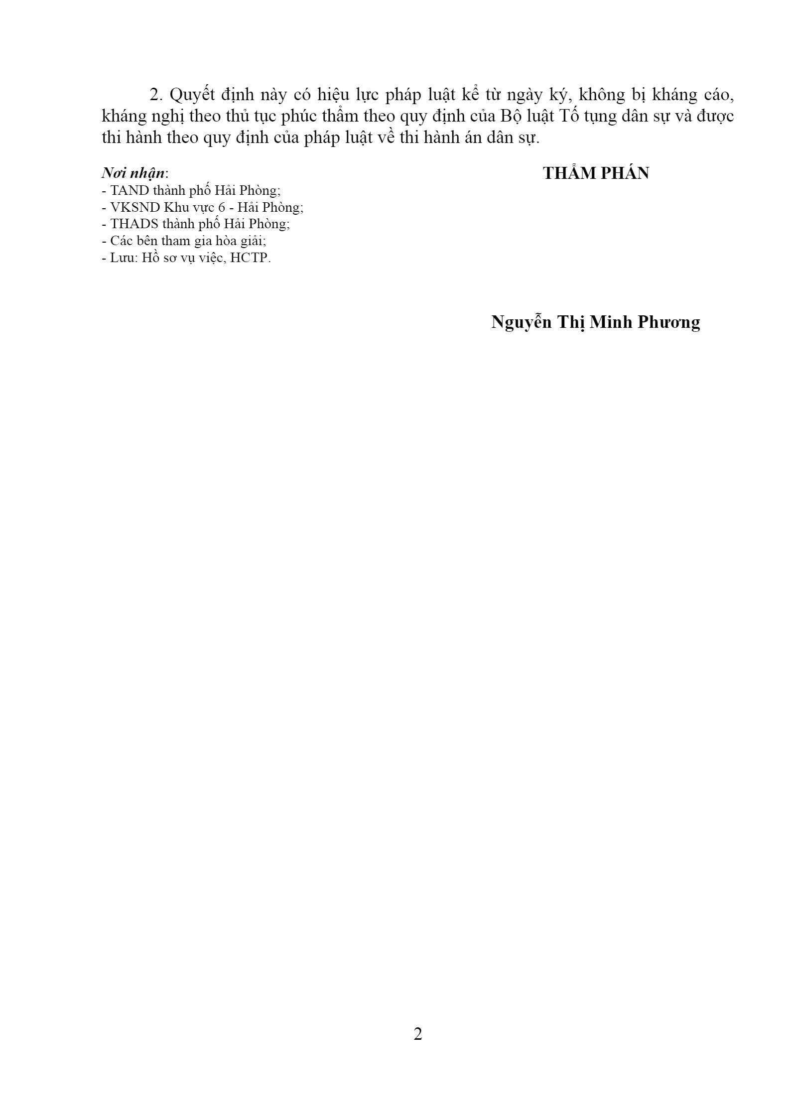 | Tòa án xét xử: | Tòa án nhân dân khu vực 6 - Hải Phòng, TP. Hải Phòng |