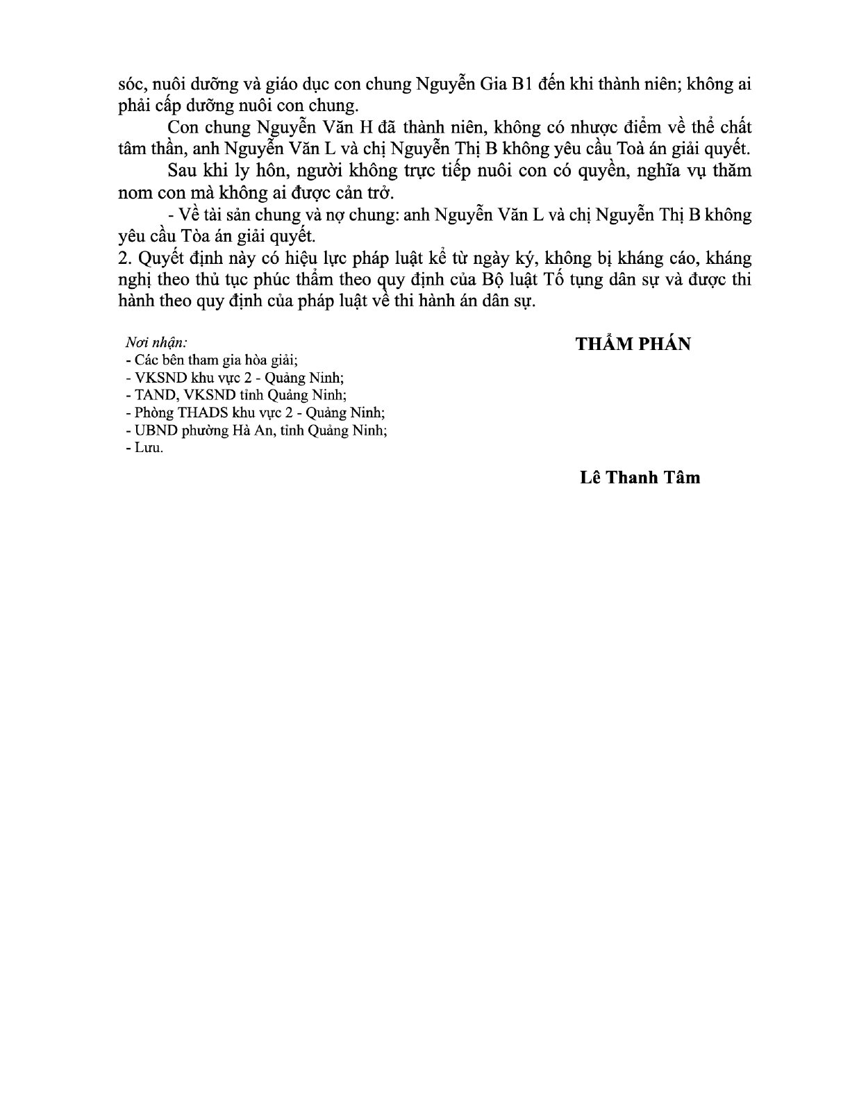 | Thông tin về vụ/việc: | anh Nguyễn Văn L xin ly hôn chị Nguyễn Thị B |