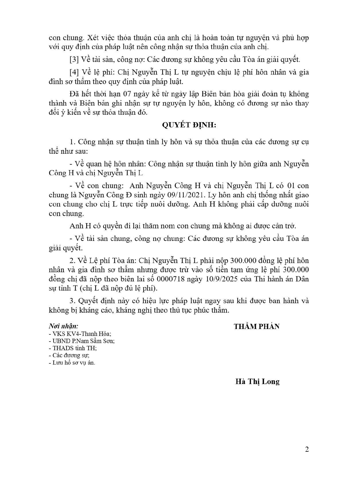 | Quan hệ pháp luật: | Yêu cầu công nhận thuận tình ly hôn... |