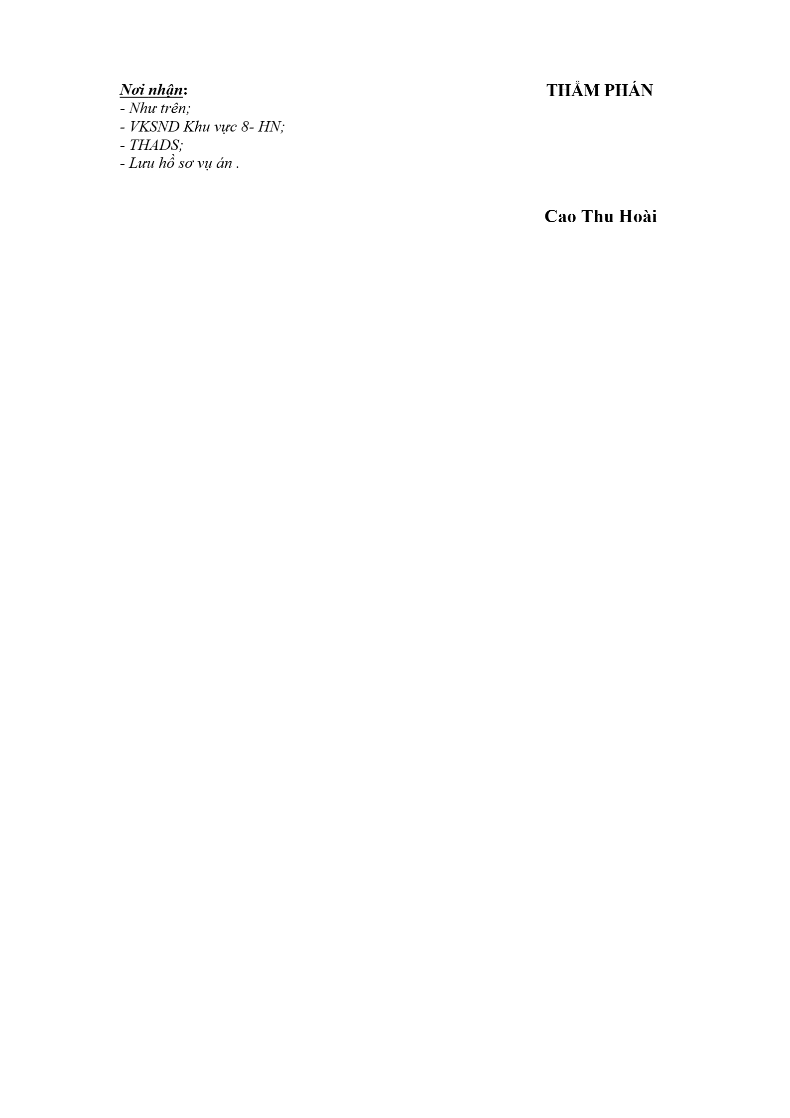 | Tòa án xét xử: | Tòa án nhân dân khu vực 8 - Hà Nội, TP. Hà Nội |