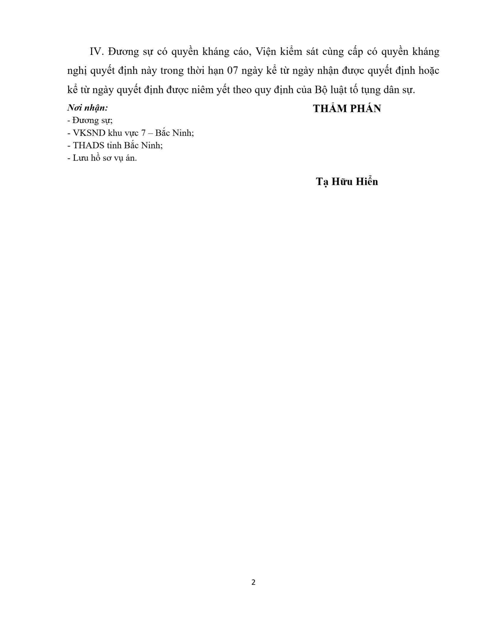| Tòa án xét xử: | Tòa án nhân dân khu vực 7 - Bắc Ninh, tỉnh Bắc Ninh |