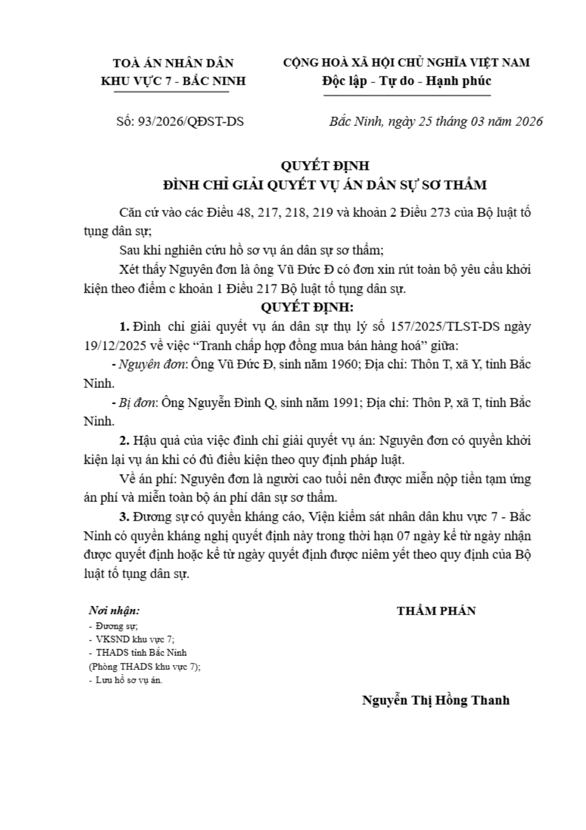 Quyết định số 93/2026/QĐST-DS