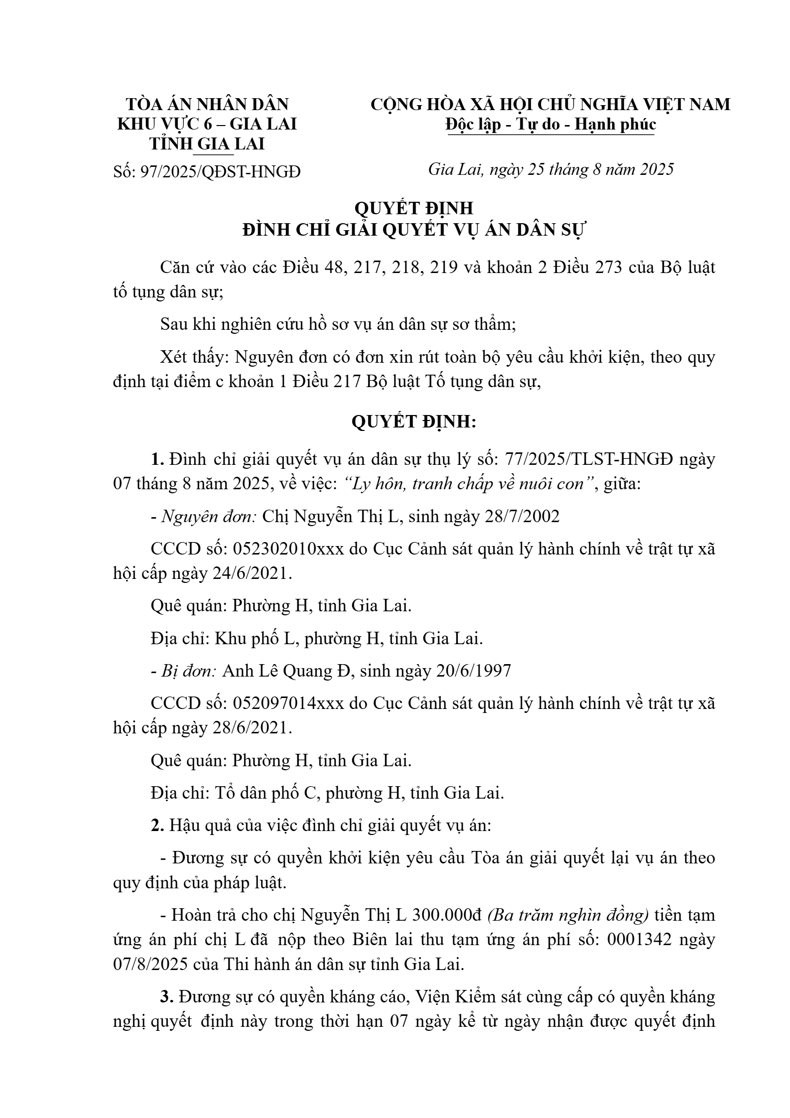 | Số hiệu: | 97/2025/QĐST-HNGĐ |