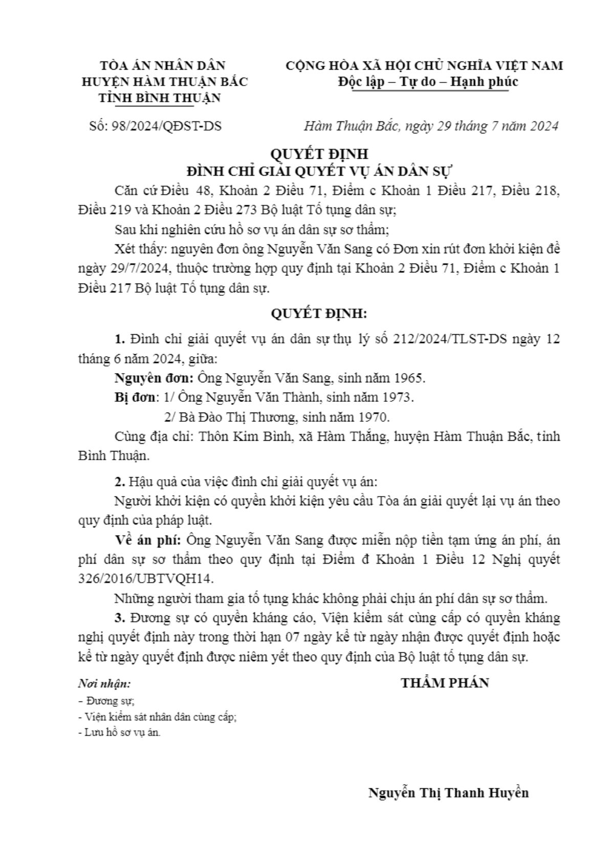 | Số hiệu: | 98/2024/QĐST-DS |