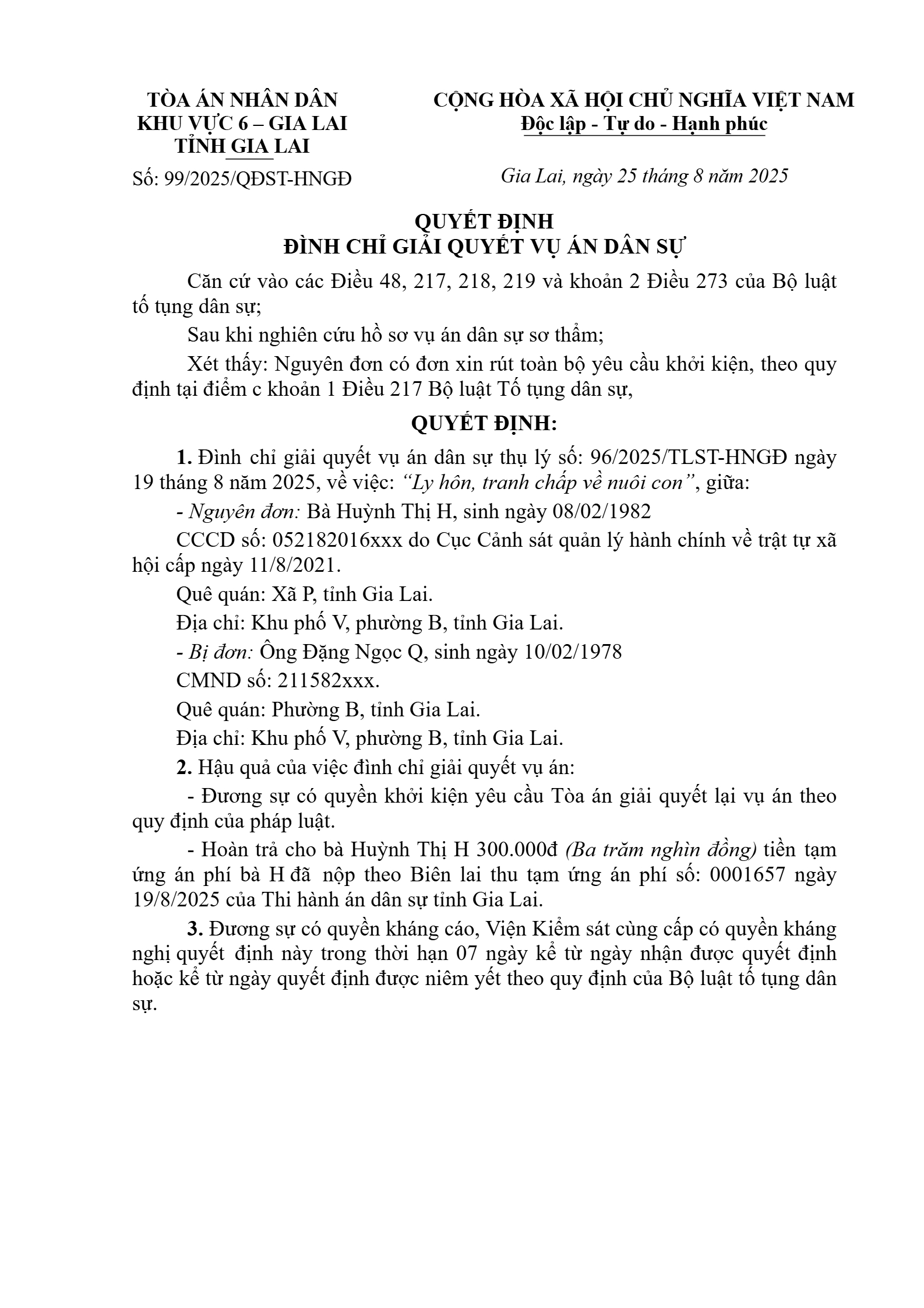 | Số hiệu: | 99/2025/QĐST-HNGĐ |