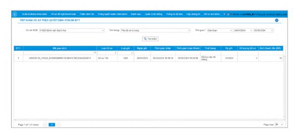 - Tình trạng file (File đã nhận và đang chờ xử lý, file đã xử lý xong)