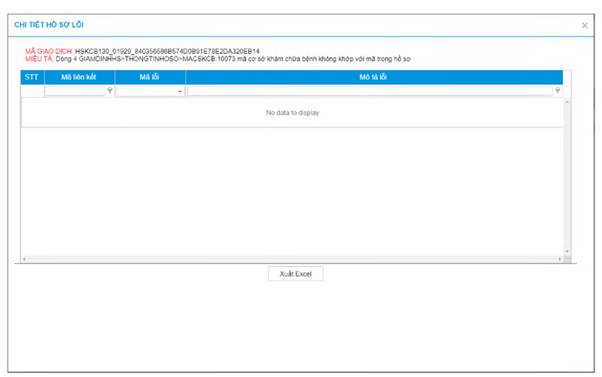 Bước 5: Xem thông tin chi tiết hồ sơ lỗi:
