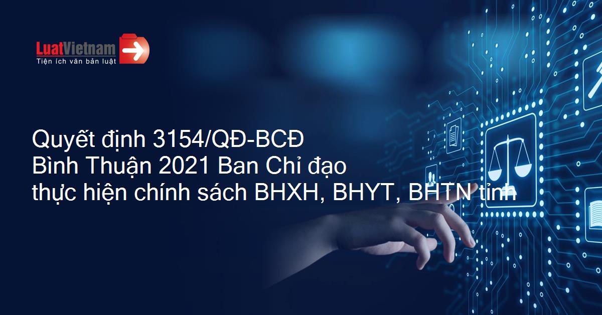Quyết định 3154/QĐ-BCĐ Bình Thuận 2021 Ban Chỉ đạo thực hiện chính sách BHXH, BHYT, BHTN tỉnh
