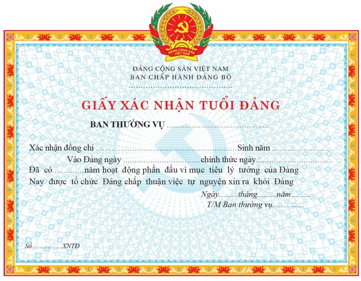 Mẫu Giấy xác nhận tuổi Đảng mới nhất 2025