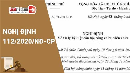 Ngày 18/9/2020, Chính phủ đã ban hành tại Nghị định 112/2020/NĐ-CP quy định về xử lý kỷ luật cán bộ, công chức, viên chức.