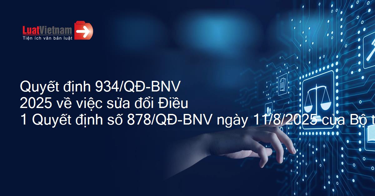 Quyết định 934/QĐ-BNV của Bộ Nội vụ về việc sửa đổi Điều 1 Quyết định số 878/QĐ-BNV ngày 11/8/2025 của Bộ trưởng Bộ Nội vụ