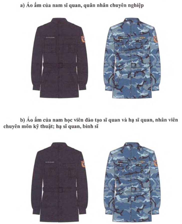 ÁO ẤM CỦA NAM, NỮ SĨ QUAN, QUÂN NHÂN CHUYÊN NGHIỆP; HỌC VIÊN ĐÀO TẠO SĨ QUAN VÀ HẠ SĨ QUAN, NHÂN VIÊN CHUYÊN MÔN KỸ THUẬT; HẠ SĨ QUAN, BINH SĨ