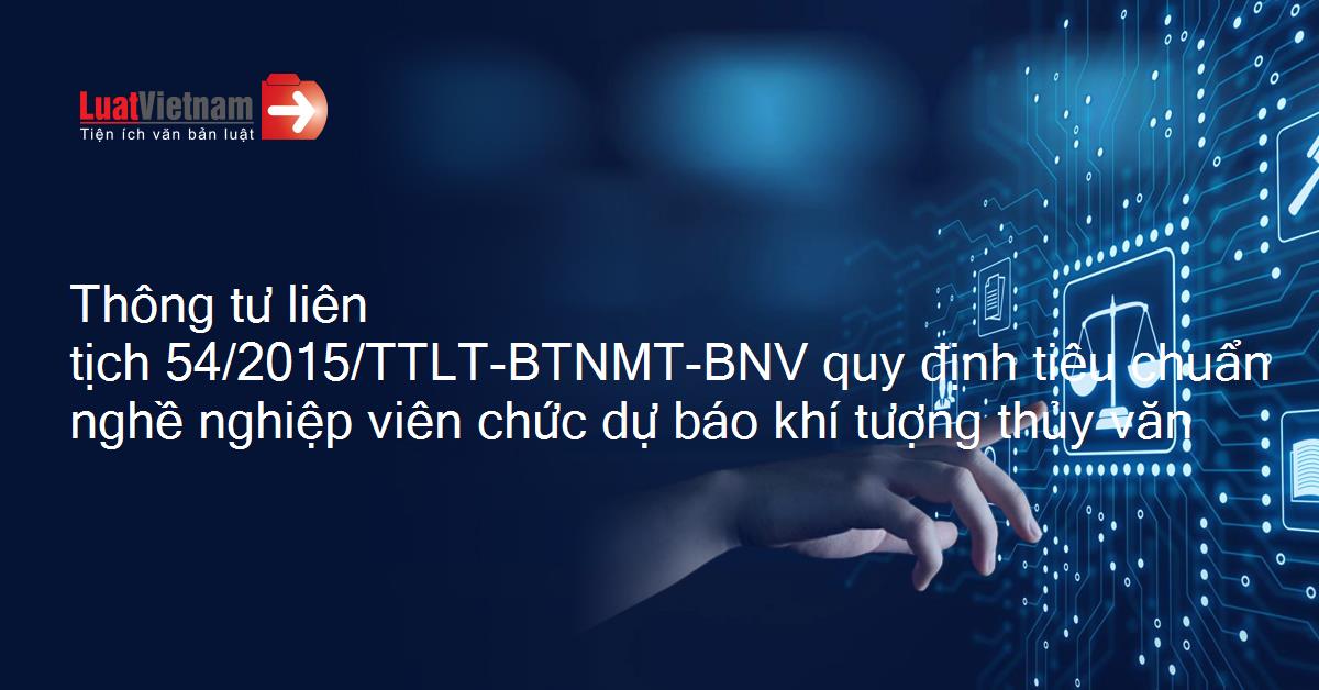 Thông tư liên tịch 54/2015/TTLT-BTNMT-BNV quy định tiêu chuẩn nghề nghiệp viên chức dự báo khí tượng thủy văn