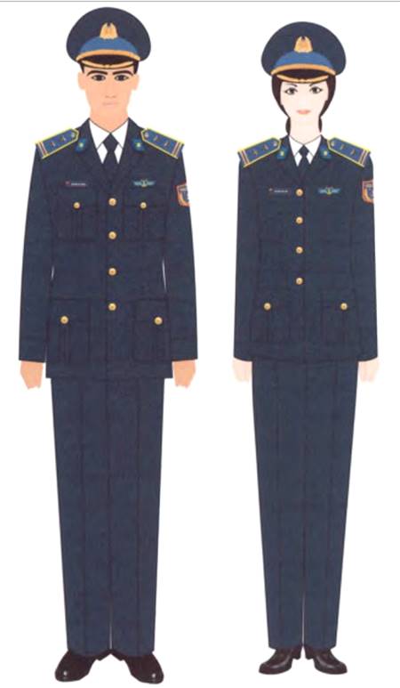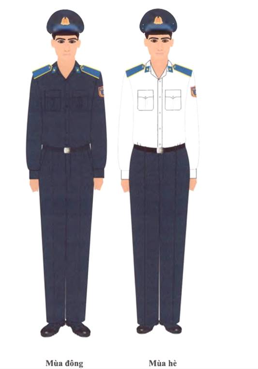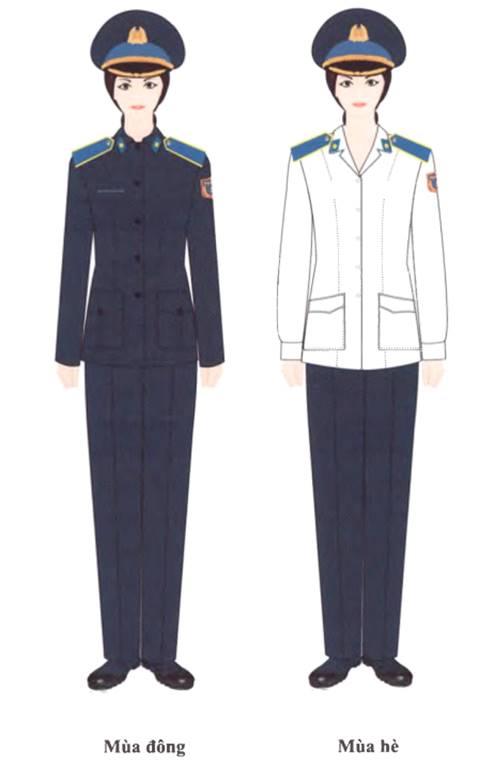 a) Cảnh phục thường dùng mùa đông: Áo, quần màu xanh tím than;
