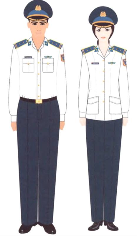 a) Áo nam: Kiểu áo sơ mi chít gấu, dài tay, cổ đứng. Ngực áo có hai túi ốp nổi, nắp túi cài cúc. Nẹp áo cài năm cúc, hai cúc đai và một cúc chân cổ. Đai áo mở cạnh, cài cúc phía bên sườn. Thân sau có cầu vai xếp hai ly. Tay áo có thép tay và măng séc cài cúc. Cúc áo bằng nhựa, đường kính 11 mm.